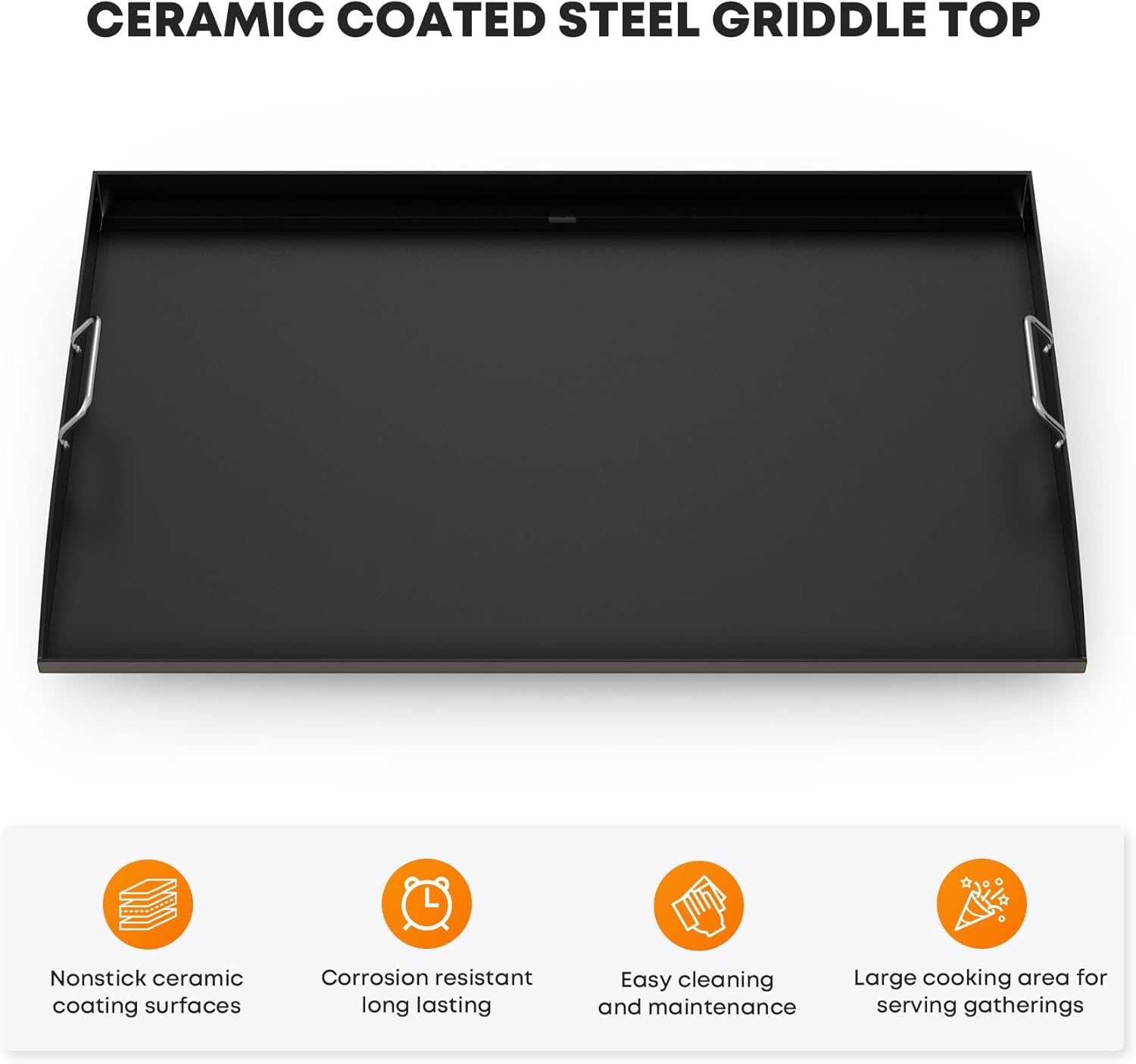 - Ceramic Coating: Griddle cooking surface features a healthy ceramic coating for superior nonstick performance and effortless cleaning. Excellent corrosion resistance, heavy duty steel construction built to last.
