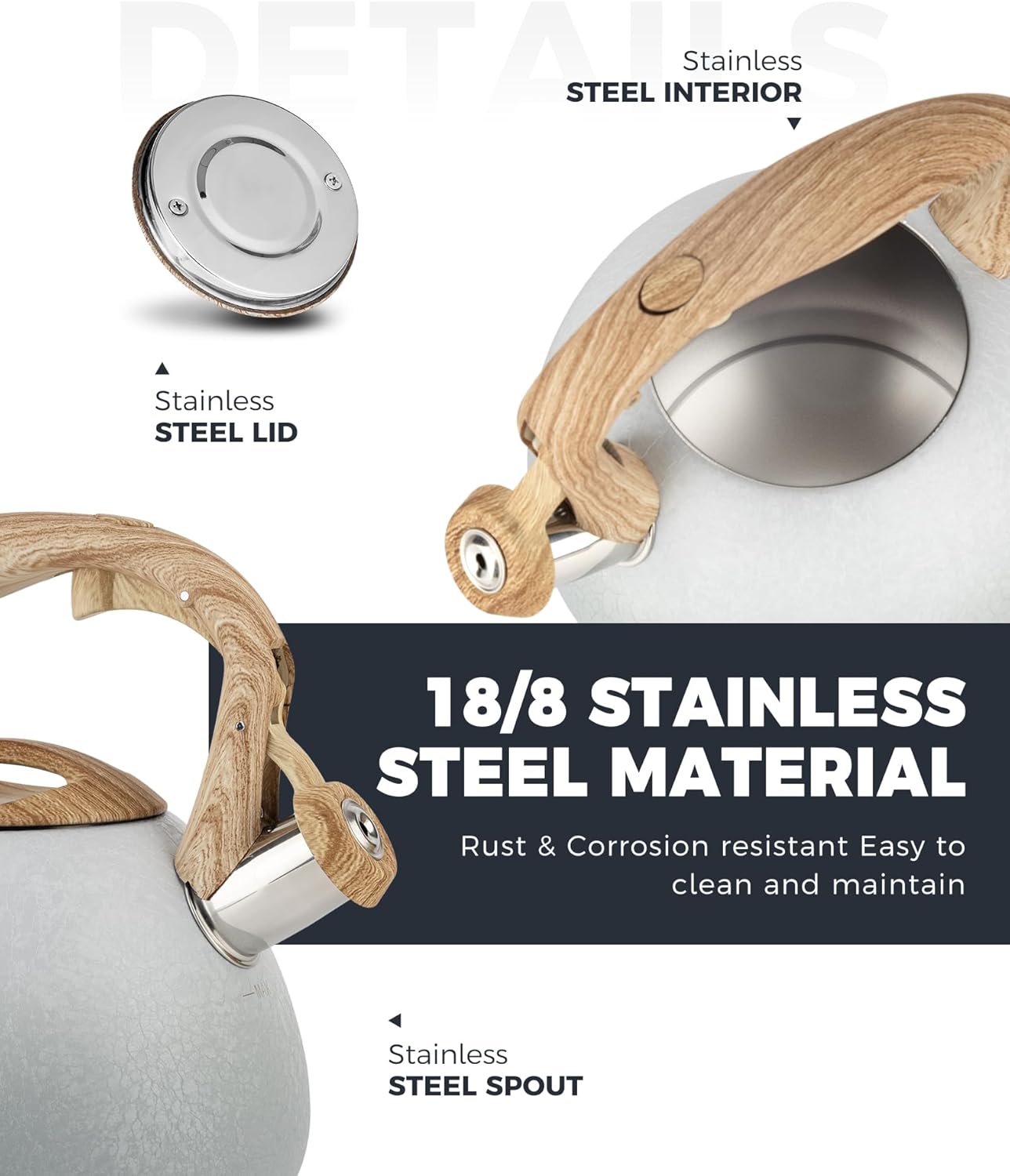 POLIVIAR Tea Kettle, 2.7 Quart Stovetop Tea Kettle, Audible Whistling Teapot with Crackle Finish, Food Grade Stainless Steel for Anti-Rust, Anti Hot Handle, Suitable for All Heat Sources (JX2023-LYW)