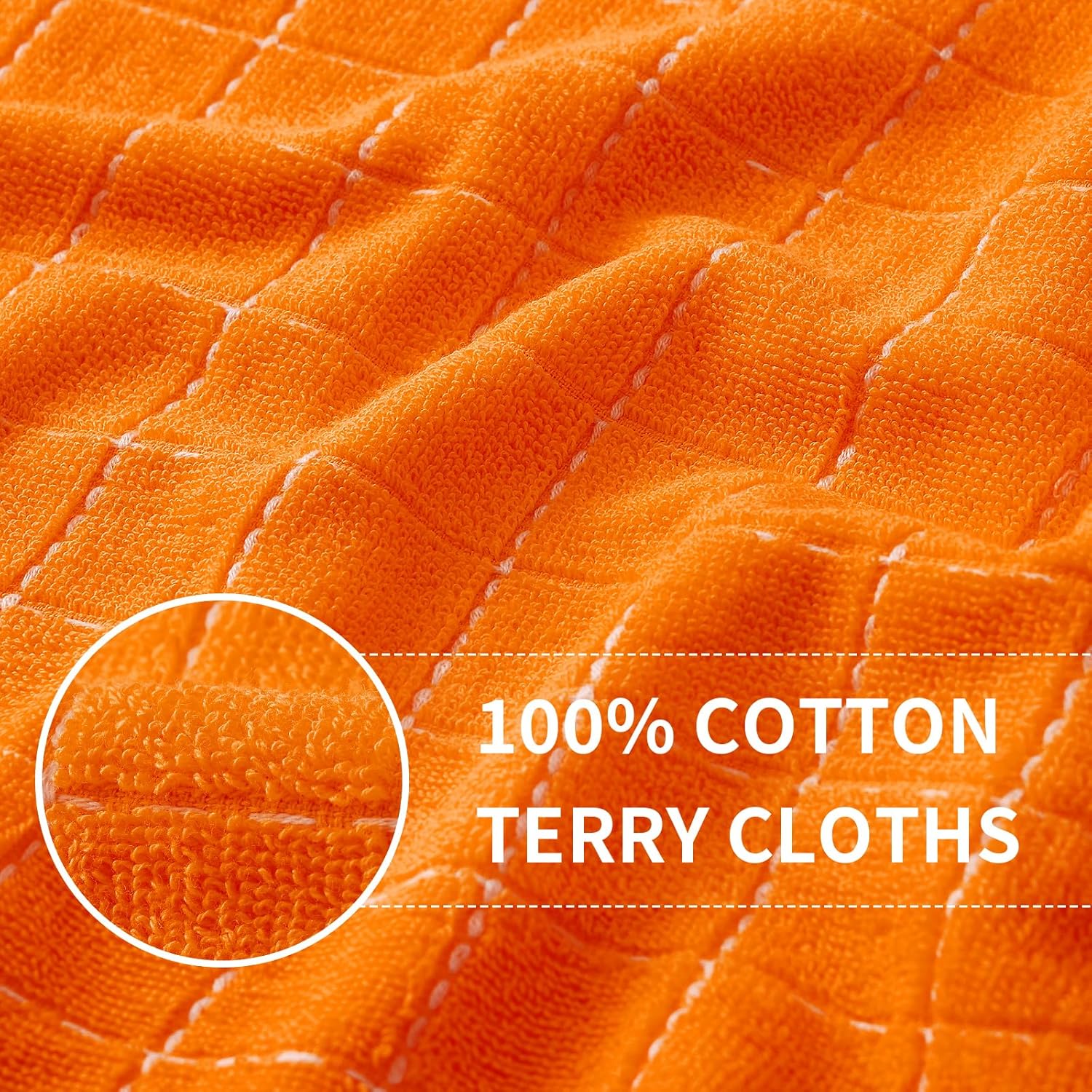 Homaxy 100% Cotton Terry Kitchen Towels(Orange, 13 x 28 inches), Checkered Designed, Soft and Super Absorbent Dish Towels, 6 Pack