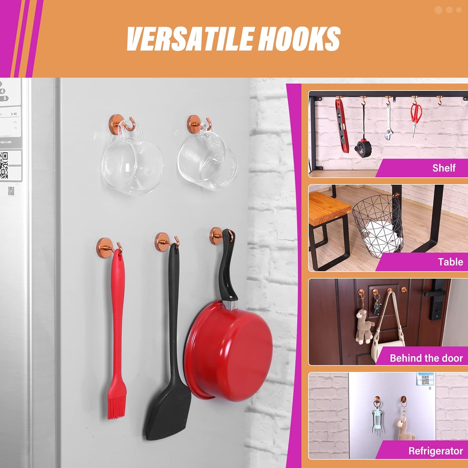 - ✔ HIGH-LEVEL PLATING- We offer 4 layers of coating on the magnet hook metal base, metal hook, and magnet. It provides this magnetic hanger with a shiny and rust-free finish. Coated magnetic hook particularly exhibits an excellent anti-corrosive properties and scratch resistance. Maintenance-free, no rust!