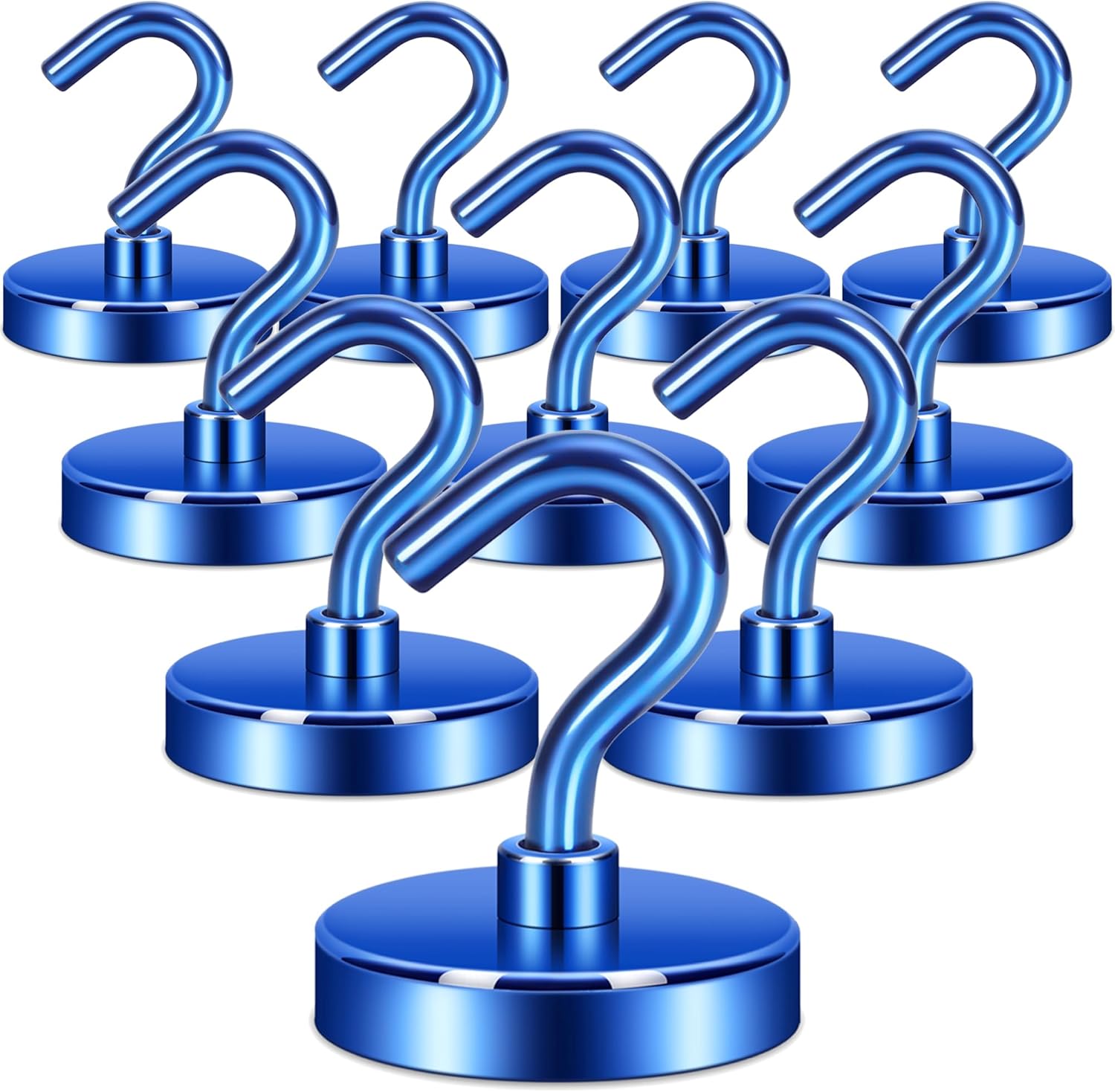 Neosmuk Magnetic Hooks Heavy Duty,Strong Magnet with Hook for Fridge, Super Neodymium Extra Strength Industrial Hooks for Hanging, Magnetic Hanger for Toolbox, Cruise, Grill(Navyblue,10 Pack)