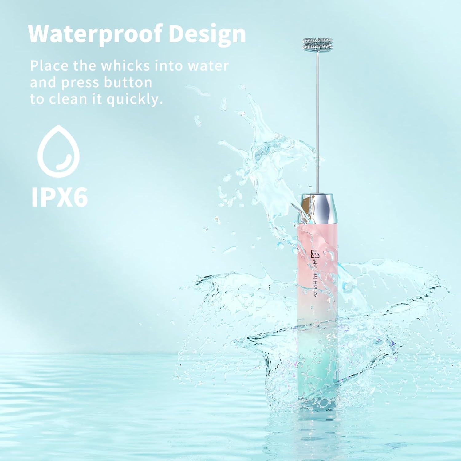 Maestri House Rechargeable Milk Frother with Stand, LunaFro Handheld Electric Foam Maker Waterproof Detachable Stainless Steel Whisk Drink Mixer Foamer for Lattes, Cappuccino