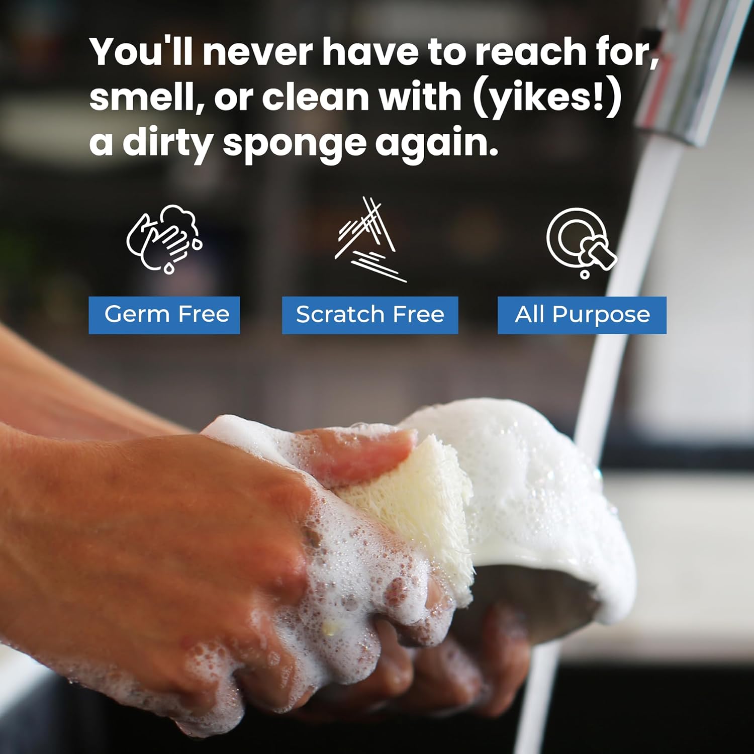 - 15 XL LOOFAH SCRUB SPONGES β Same great scrub, now twice the size! Get rid of stinky, old sponges in your home! 15 all-purpose, natural scrub sponges intended for one day use, yet durable enough to last for weeks and to tackle the toughest cleaning jobs