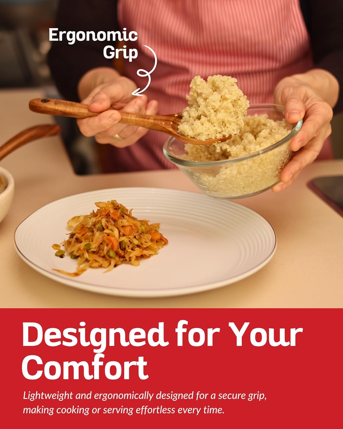 - A Gift They’ll Love – Packaged with care, this wooden kitchen utensil set makes a thoughtful gift for weddings, housewarmings, or birthdays. Surprise the cook in your life with a set that’s as practical as it is pretty!