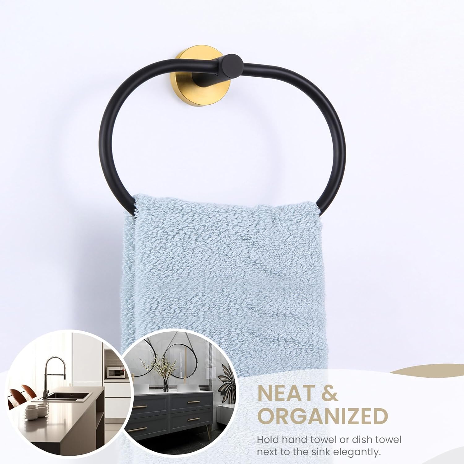 - NEAT & CLEAN COUNTERTOP: are you troubled by having nowhere to place towels? Our towel ring provide an elegant way to storage your hand towels. No need to throw towels on countertop