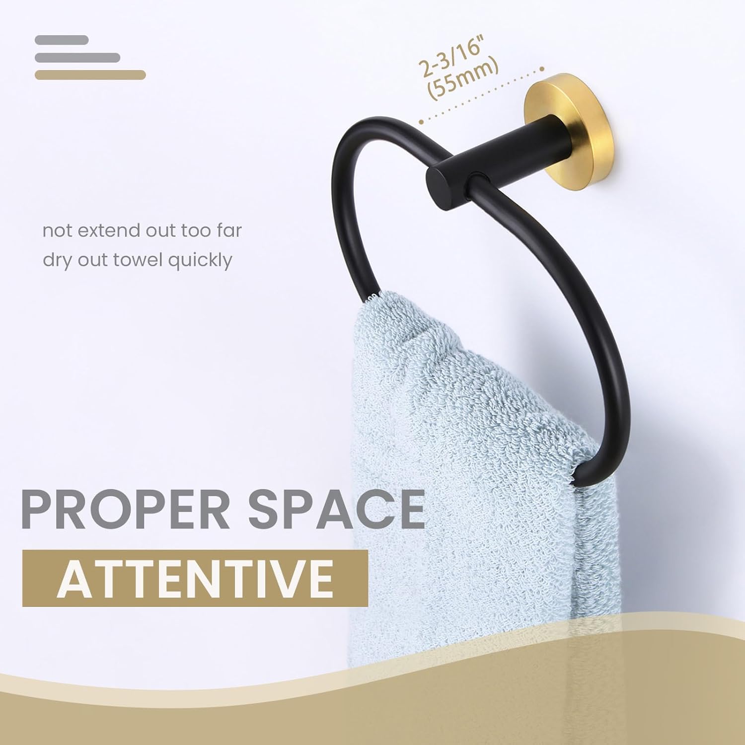 - DRY OUT DAMP TOWELS: depth from the wall to ring is 2-3/16"(55mm), not extend out far. Conducive to dry out wet towel naturally, oval shape for better spreading the towels