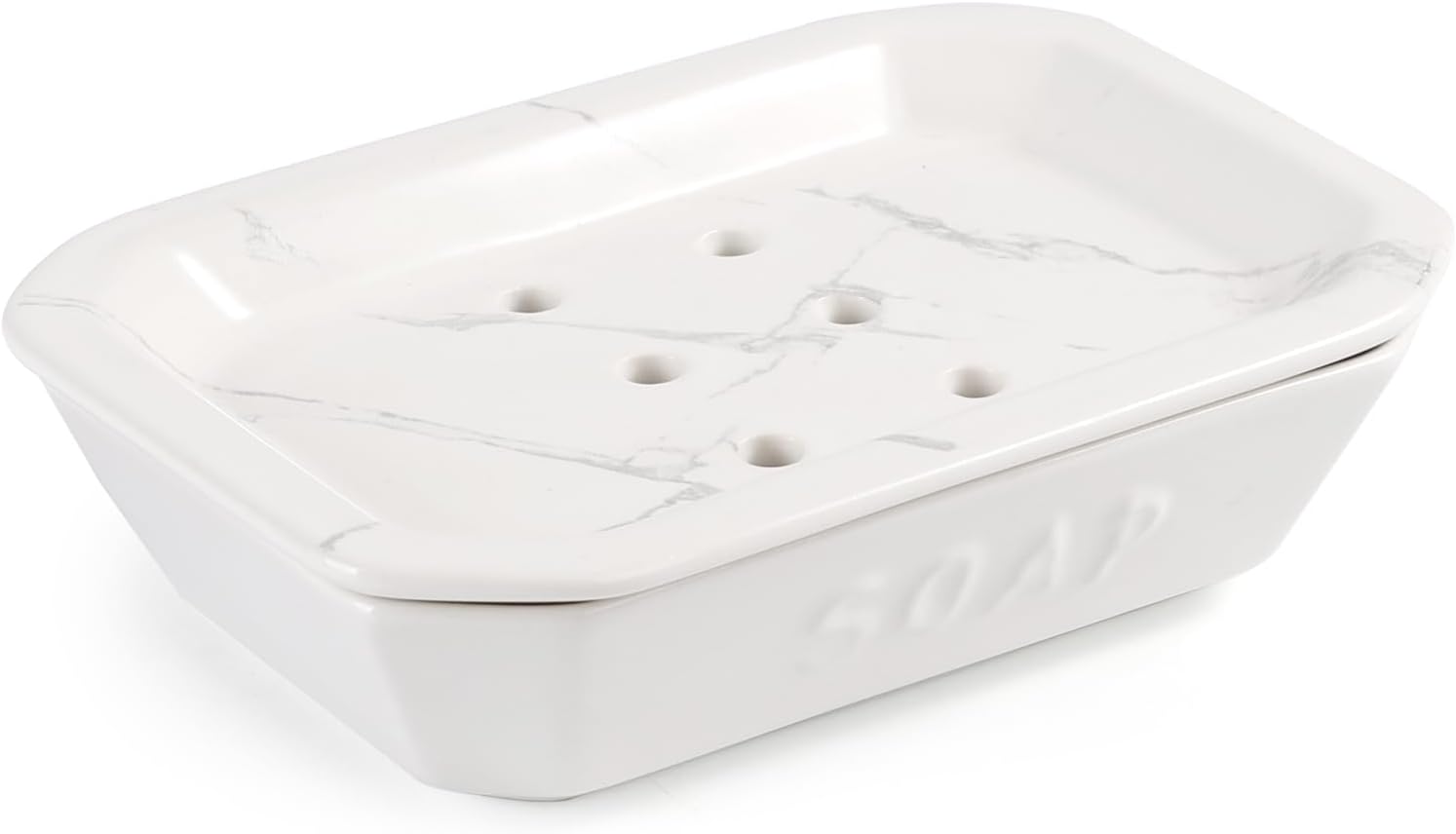 Soap Dish, Ceramic Self-draining Soap Holder, Double Layer Bar Soap Holder with Drain, Soap Dishes for Bathroom Shower Kitchen, Easy to Clean Keep Soap Dry, Off-white with Marble Pattern, ANTIS'S HOME