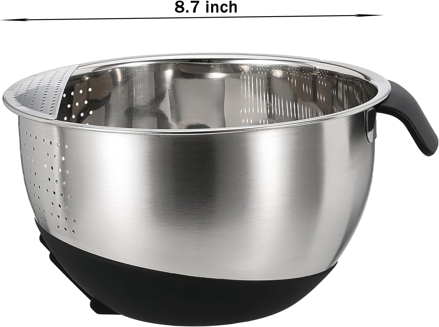 - Quick Drainage Colander Strainer: Equipped with fine drainage holes on the side, this stainless steel washing bowl ensures quick water drainage while preventing food from falling through.