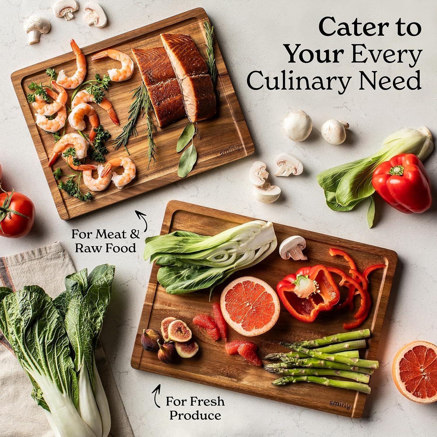 - 2-Pack for Versatile Prep - Our 2-pack cutting board set provides two different sizes, giving you the flexibility to tackle various kitchen tasks. Whether chopping vegetables or slicing meats, these durable acacia boards meet all your culinary needs.