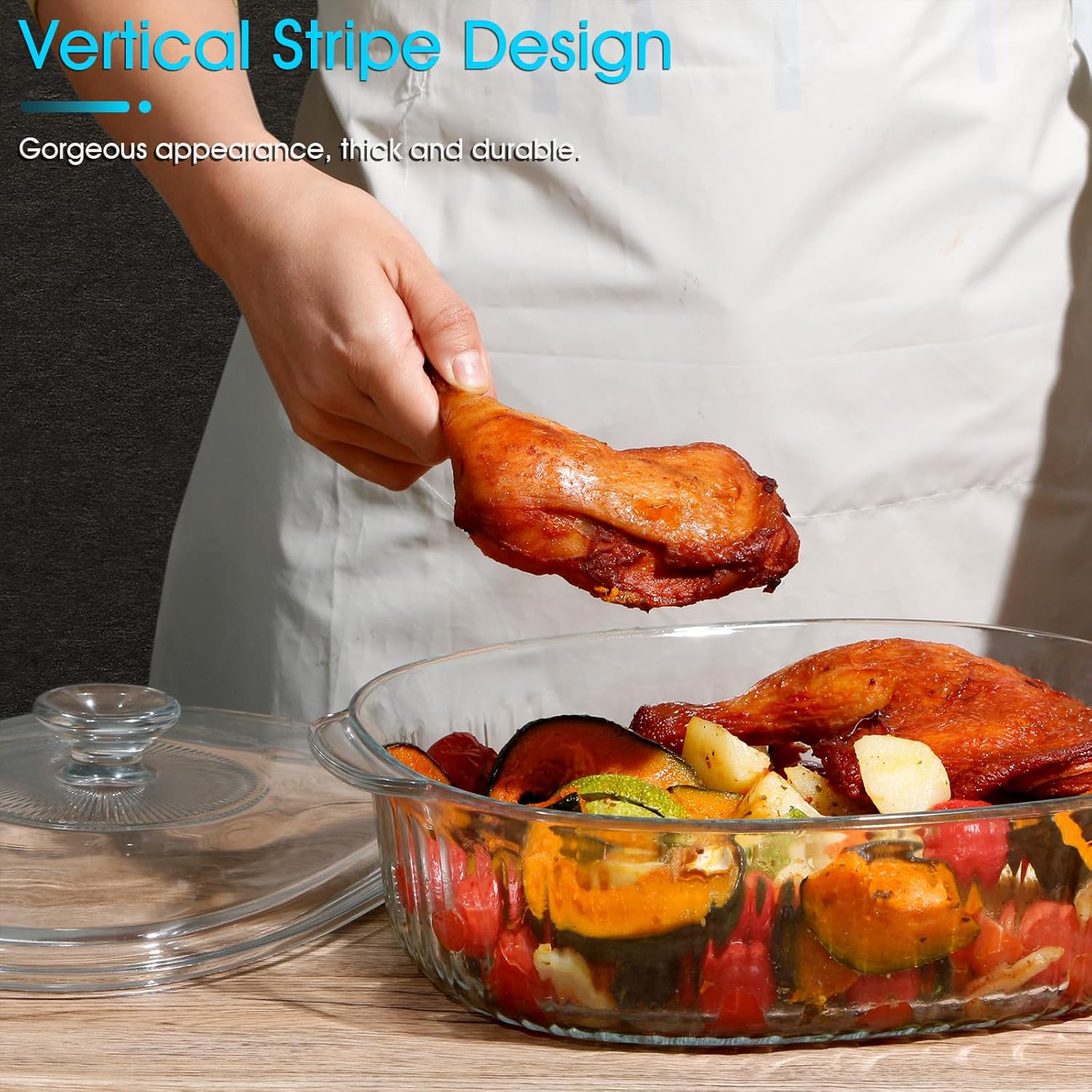 - 【Elegant and Stylish Design】NUTRIUPS Glass Casserole Dish features a vertical stripe design that adds a touch of elegance and style to your kitchen. Whether you're serving a family dinner or hosting a party, this casserole dish with lid will impress your guests with its sophisticated look.