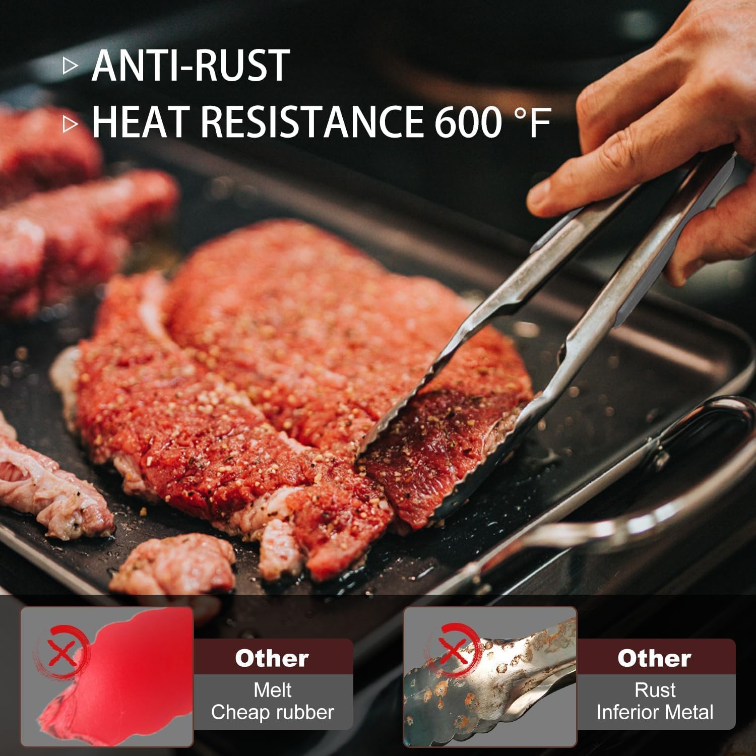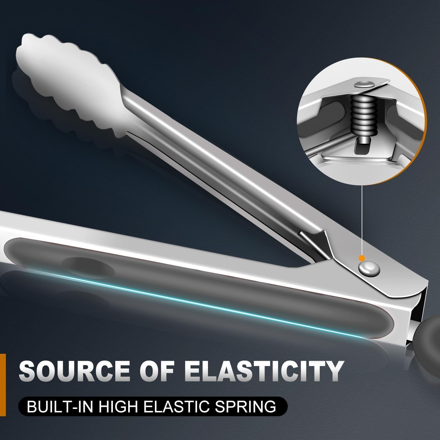 - ERGONOMIC HANDLE DESIGN AND HEAT RESISTANT: kitchen tongs The handle is cushioned with silicon, good for thumb rest and ensures good grip and control. The metal tong head is super heat resistant. Easy to rinse, dishwasher safe.