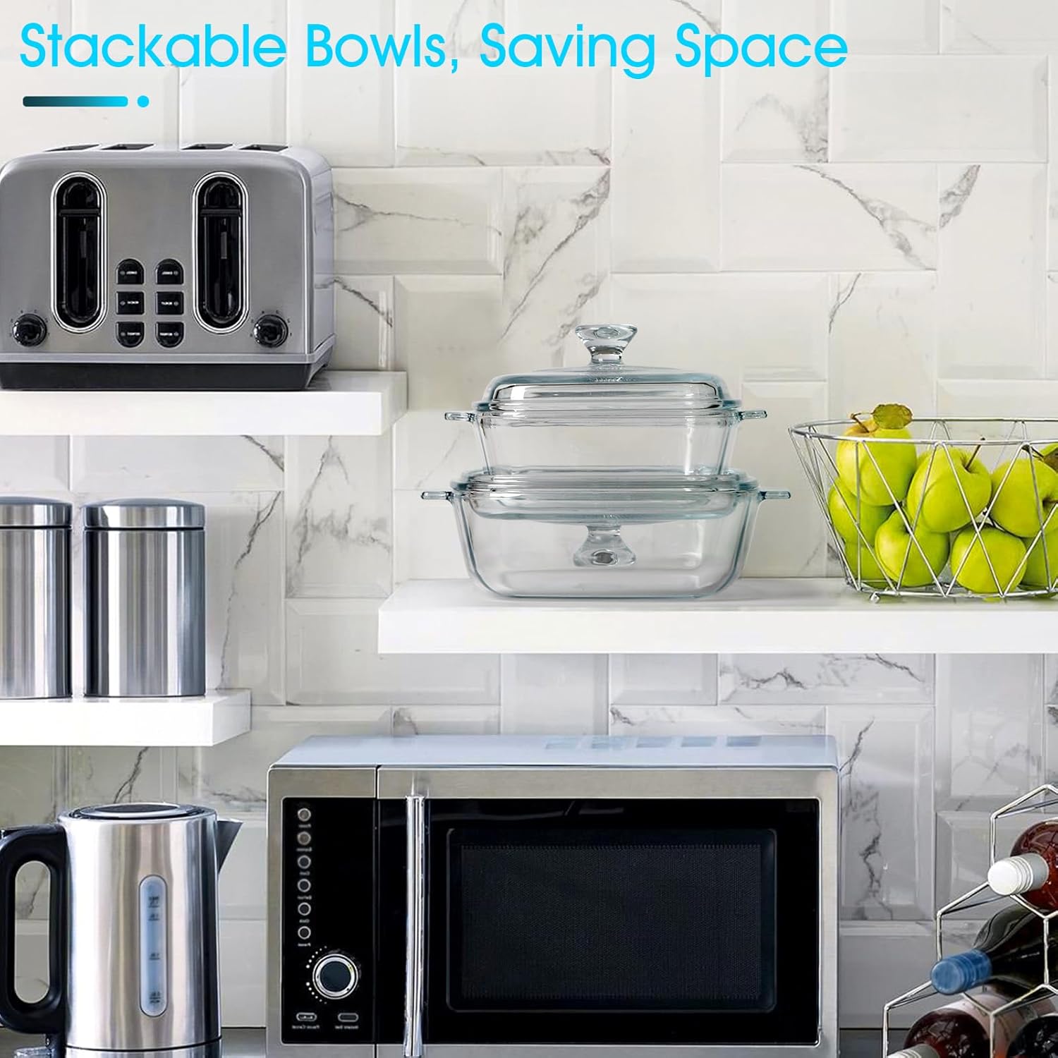 - Clear Covered Casserole Dish: The transparent bowl allows you to know how everything is cooking without having to poke into it or bother its presentation. The wide and shallow design promotes faster and more even cooking or cooling of food.