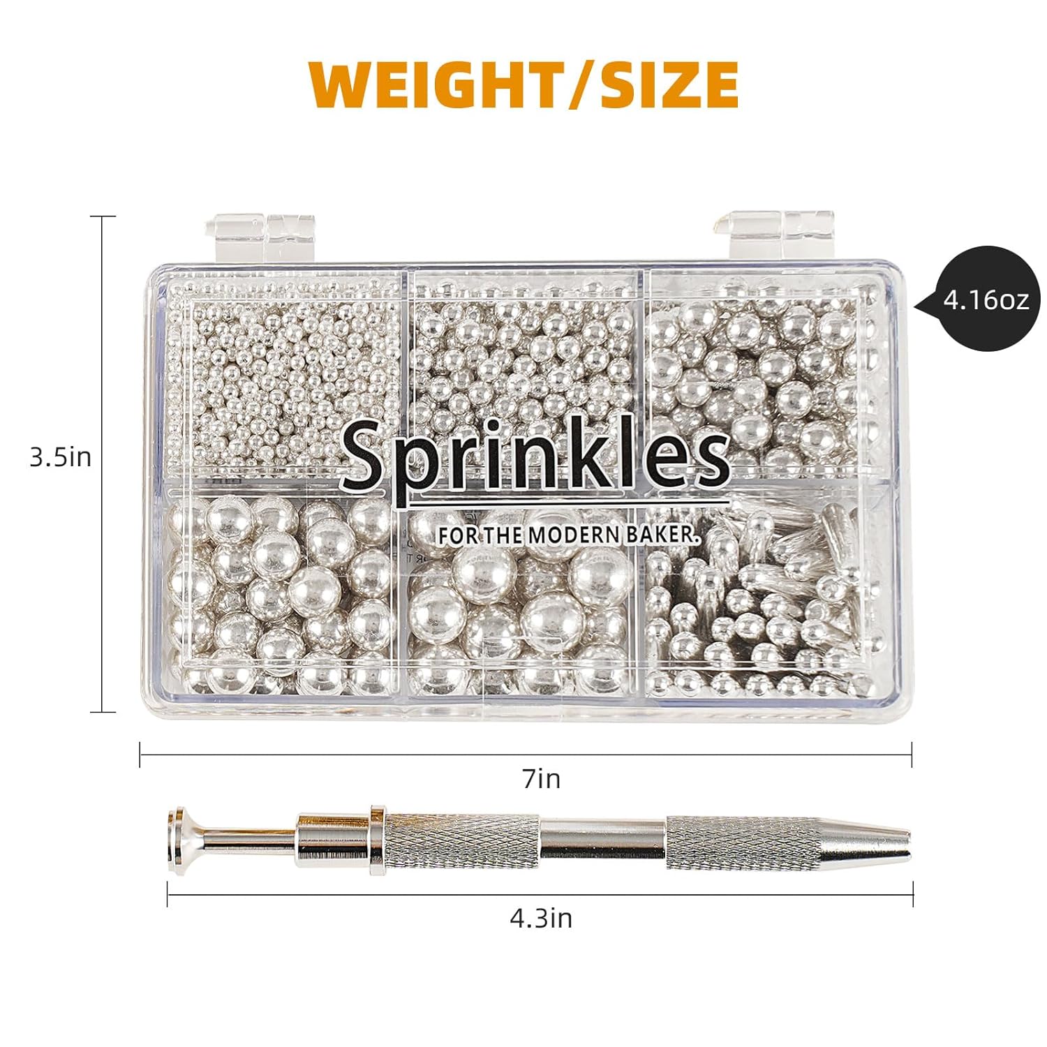 - 【Product List】: You will receive: 1 box of silver cake sprinkles, 118g/4.16oz. 1 piece of pearl grabber. Sufficient quantity, convenient and practical, it can meet your daily needs well.