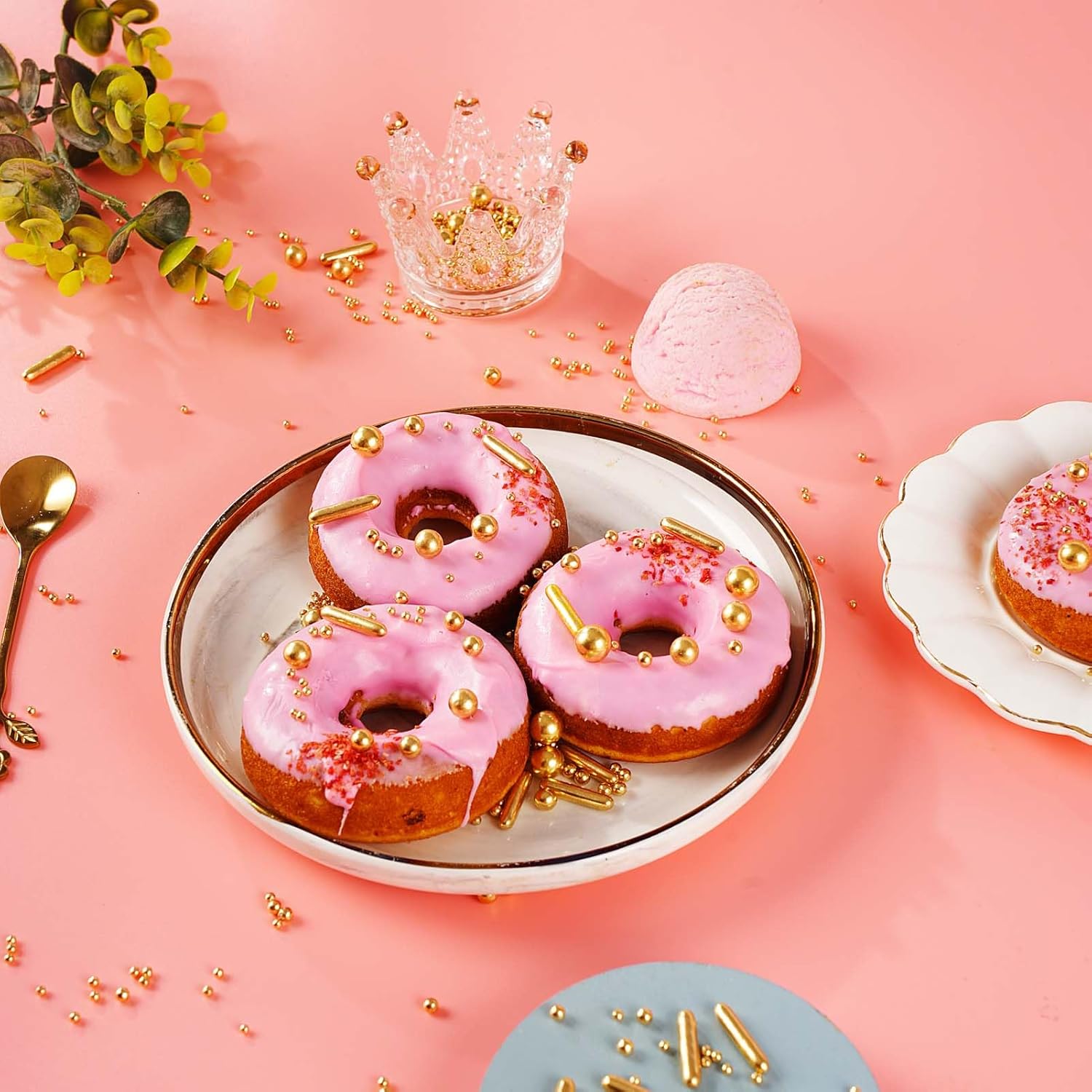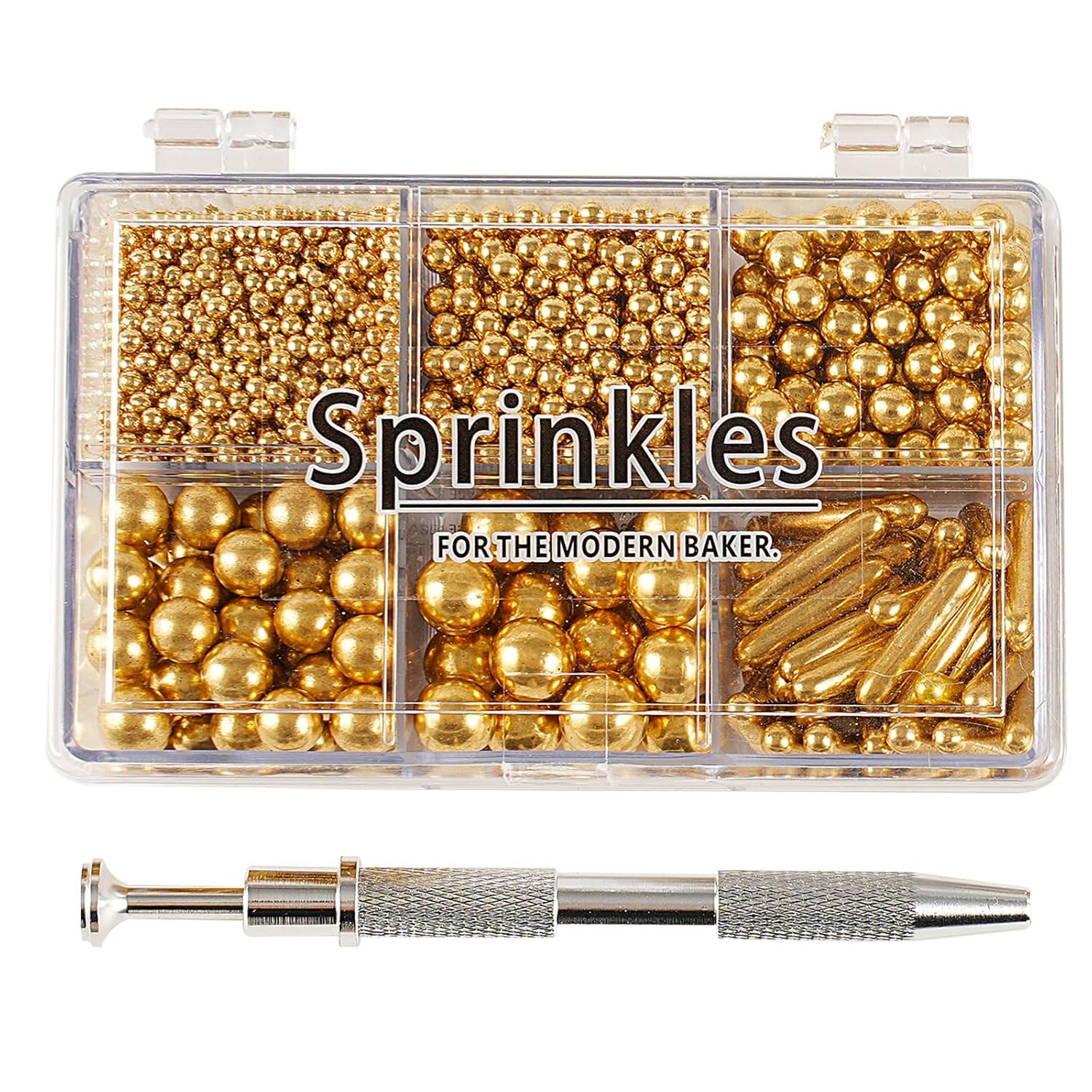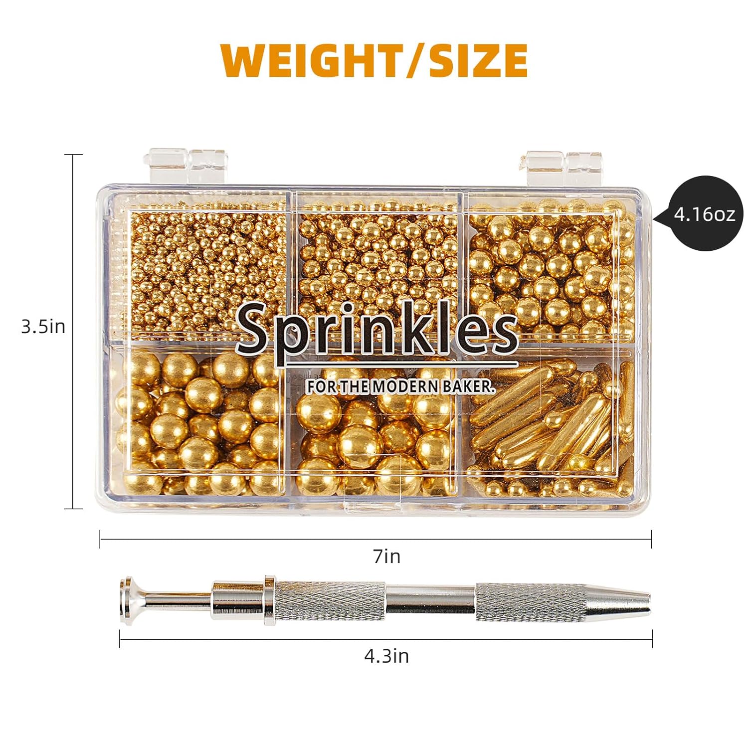 • 【Product List】: You will receive: 1 box of gold cake sprinkles, 118g/4.16oz. 1 piece of pearl grabber. Sufficient quantity, convenient and practical, it can meet your daily needs well.
