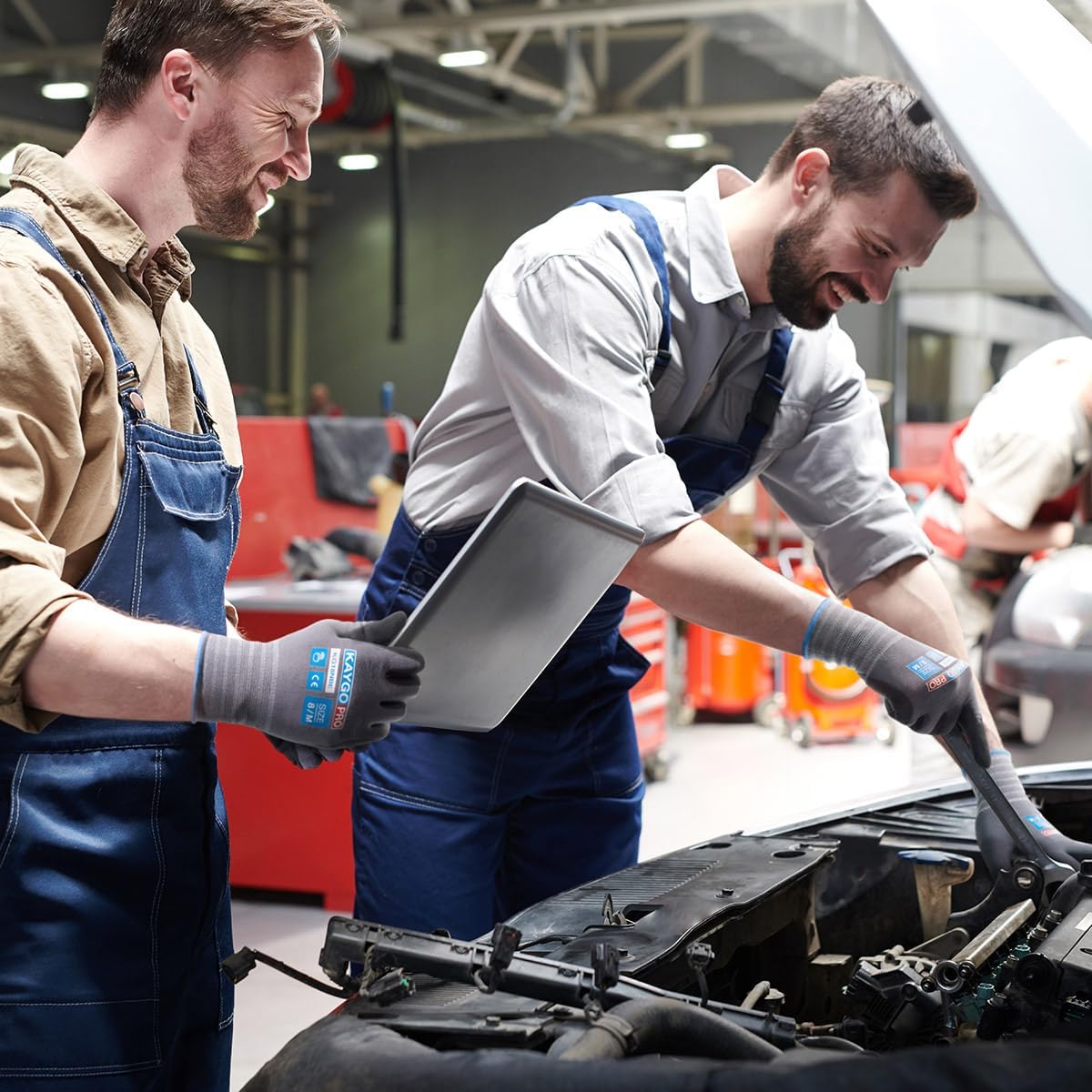 KAYGO Safety Work Gloves MicroFoam Nitrile Coated, 3 Pairs KG18NB,Seamless Knit Nylon Glove with full fingers Touchscreen, Ideal for Automotive,Warehouse,Construction (Gray, X-Large)