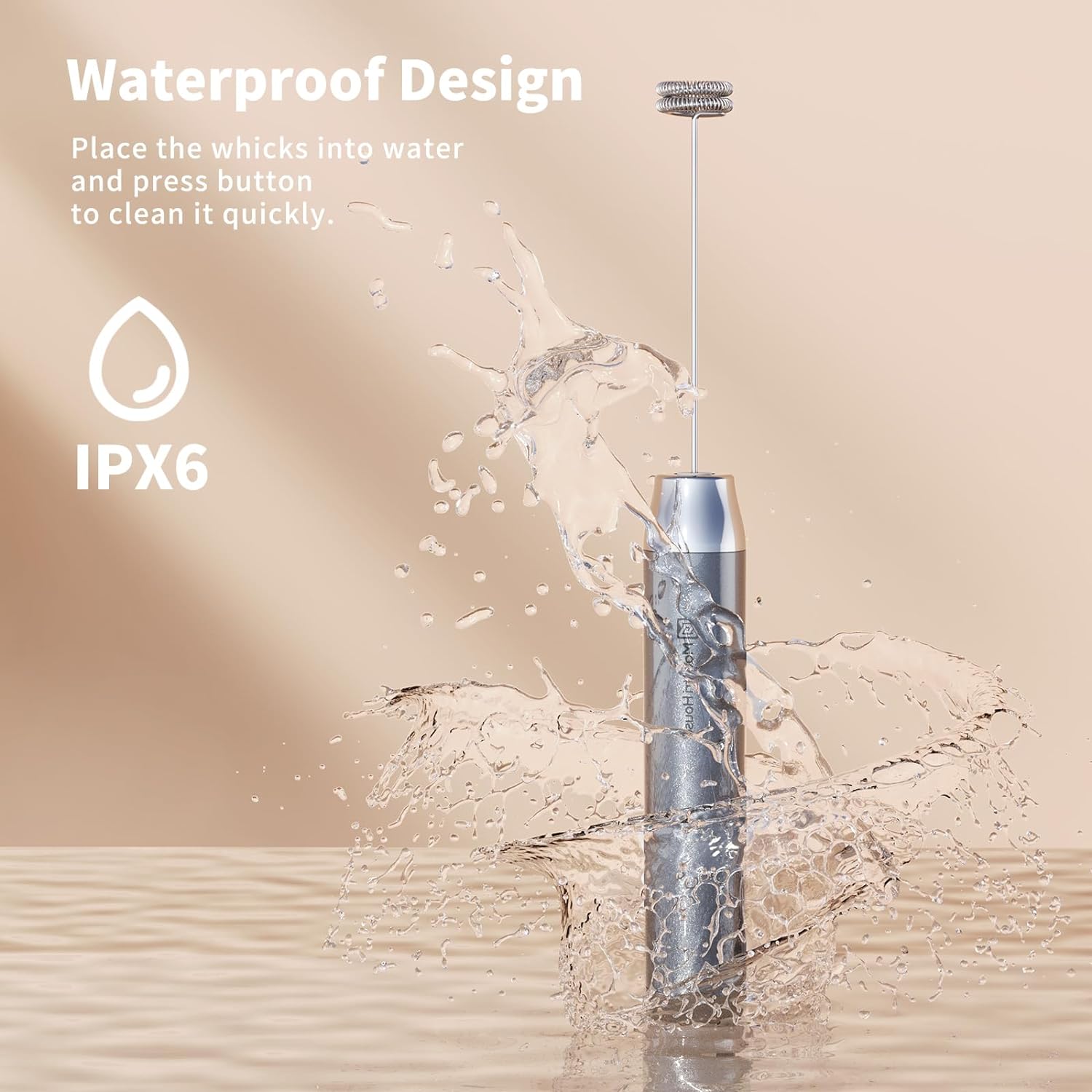 Maestri House Rechargeable Milk Frother with Stand, LunaFro Handheld Electric Foam Maker Waterproof Detachable Stainless Steel Whisk Drink Mixer Foamer for Lattes, Cappuccino