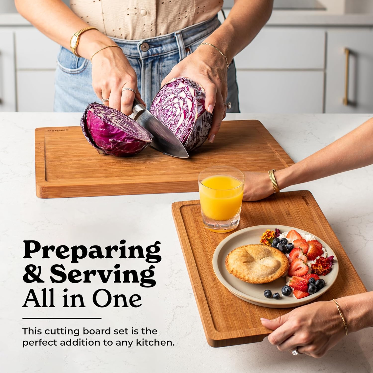 - Stylish and Durable Upgrade - Add elegance to your kitchen with our bamboo cutting boards. Enjoy their durable, non-slip functionality, making them both a practical and stylish choice.