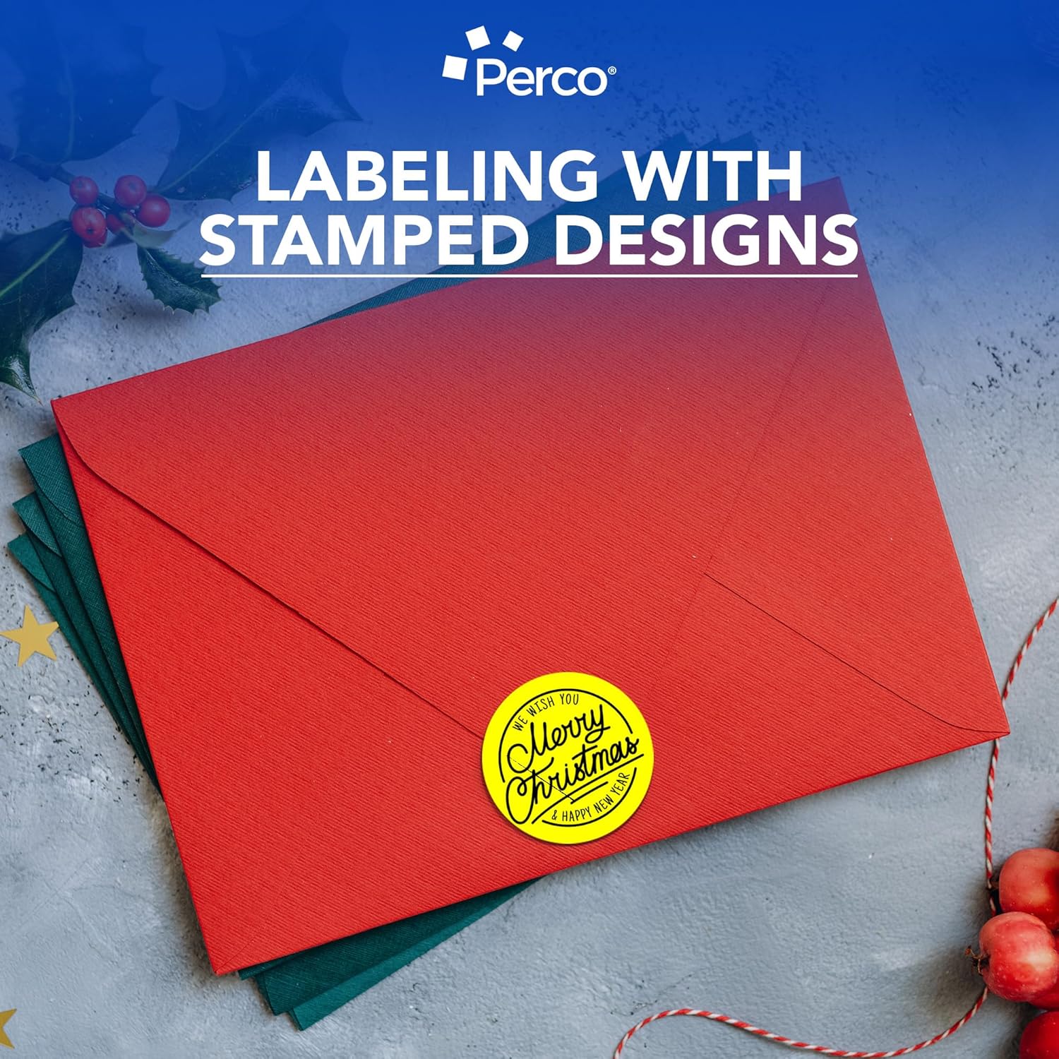 Perco Fluorescent Yellow 3-Inch Round Sticker Labels with Easy Peel Perforation - 500 Labels per Roll - Strong Adhesion, Vibrant Colors for Organizing, Crafting & More - Made in USA