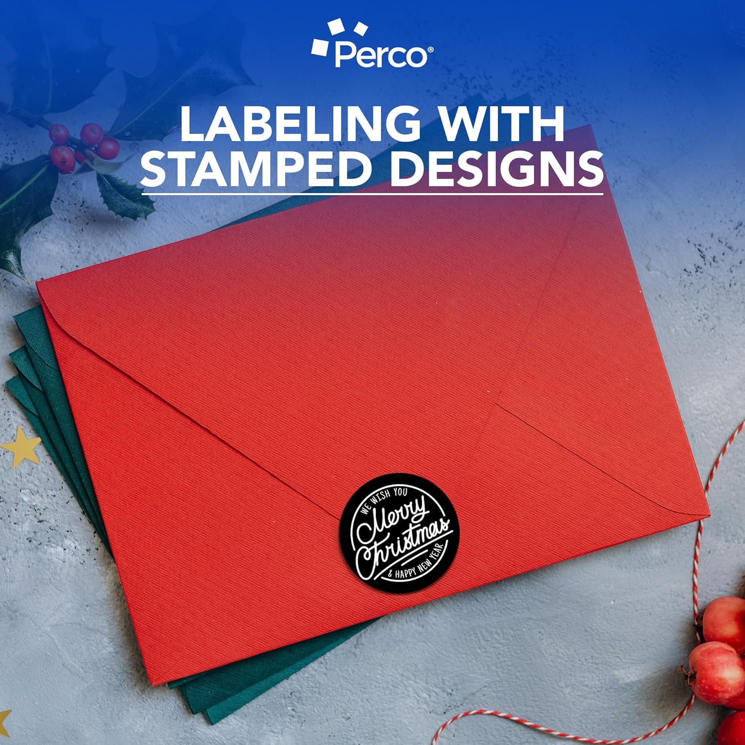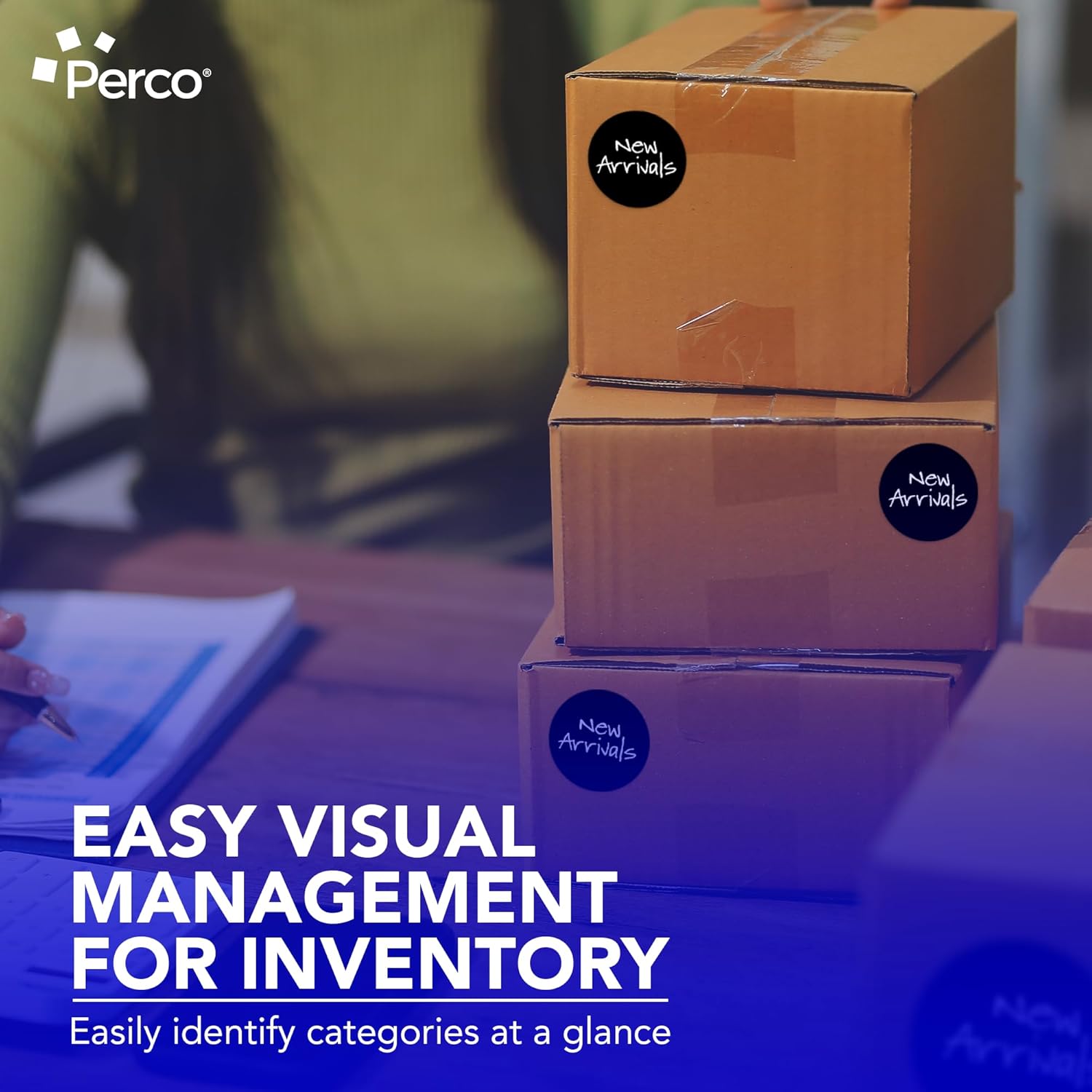 Perco Black 3-Inch Round Circle Dot Sticker Labels with Easy Peel Perforation - 500 Labels per Roll - Strong Adhesion, Vibrant Colors for Organizing, Crafting & More - Made in USA