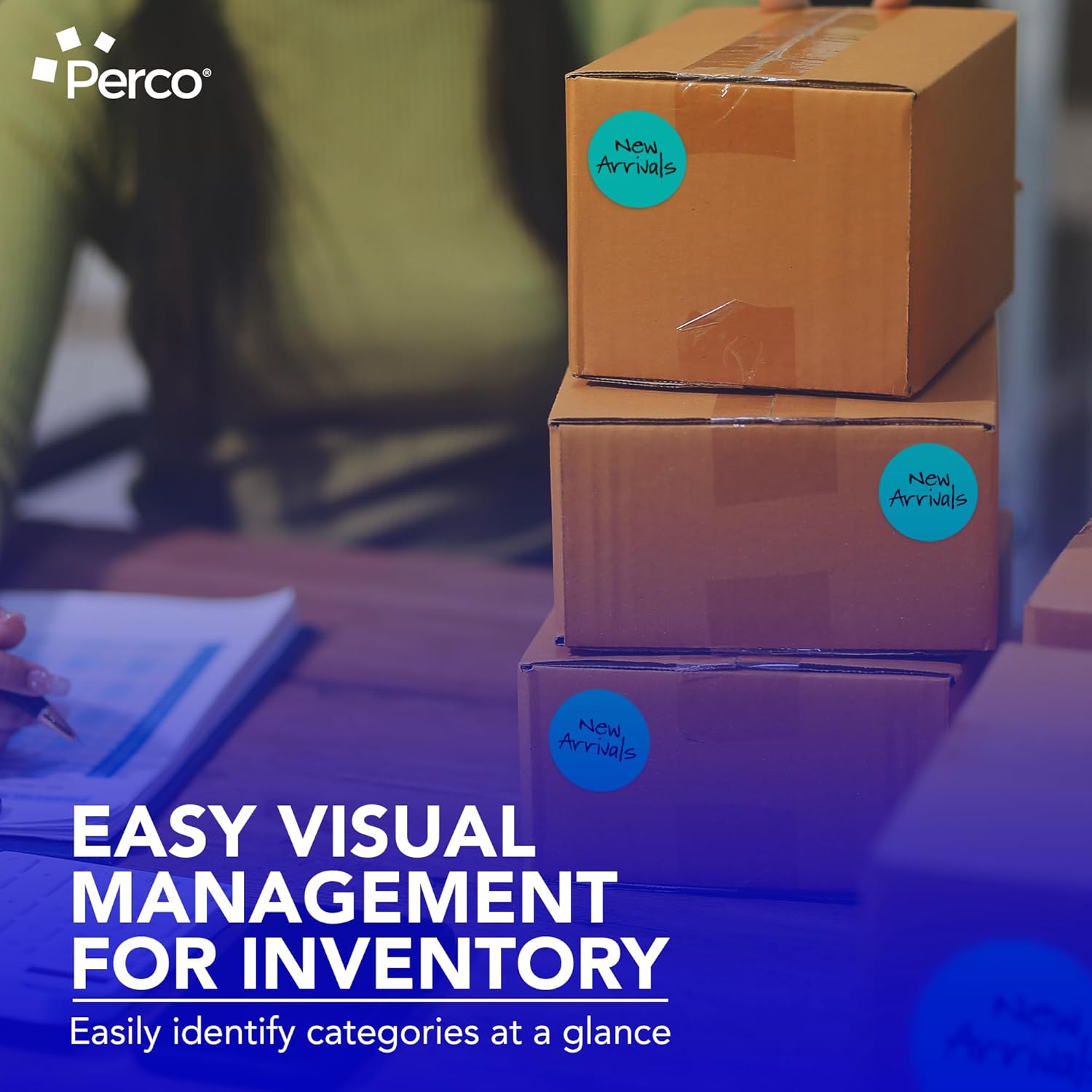 Perco Teal 3-Inch Round Circle Dot Sticker Labels with Easy Peel Perforation - 500 Labels per Roll - Strong Adhesion, Vibrant Colors for Organizing, Crafting & More - Made in USA
