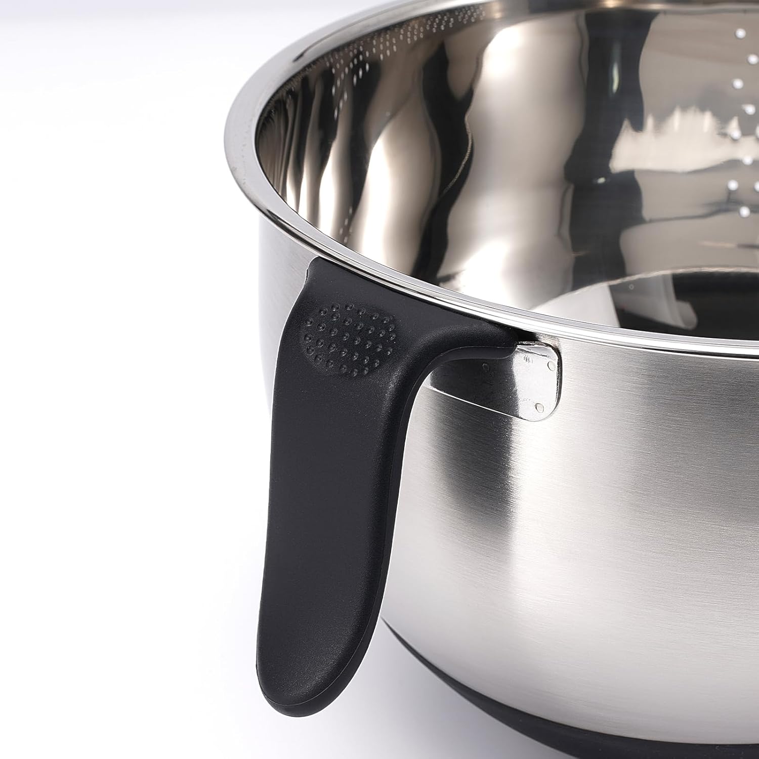 - Effective Side Drainers: The unique slanted design at the bottom of the colander allows water or other liquids to flow out quickly and easily, and the side drainers make it easy to thoroughly wash rice before cooking.