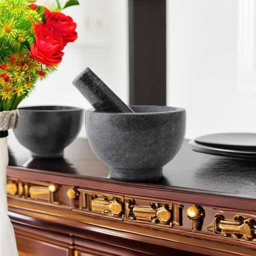 - 【Each Piece is one of a kind】The Mortar and Pestle is made of actual granite with rich crystals. Because the different distribution of natural stone crystals, each piece is one of a kind. It is heavy-duty and durable, both gorgeous and functional.