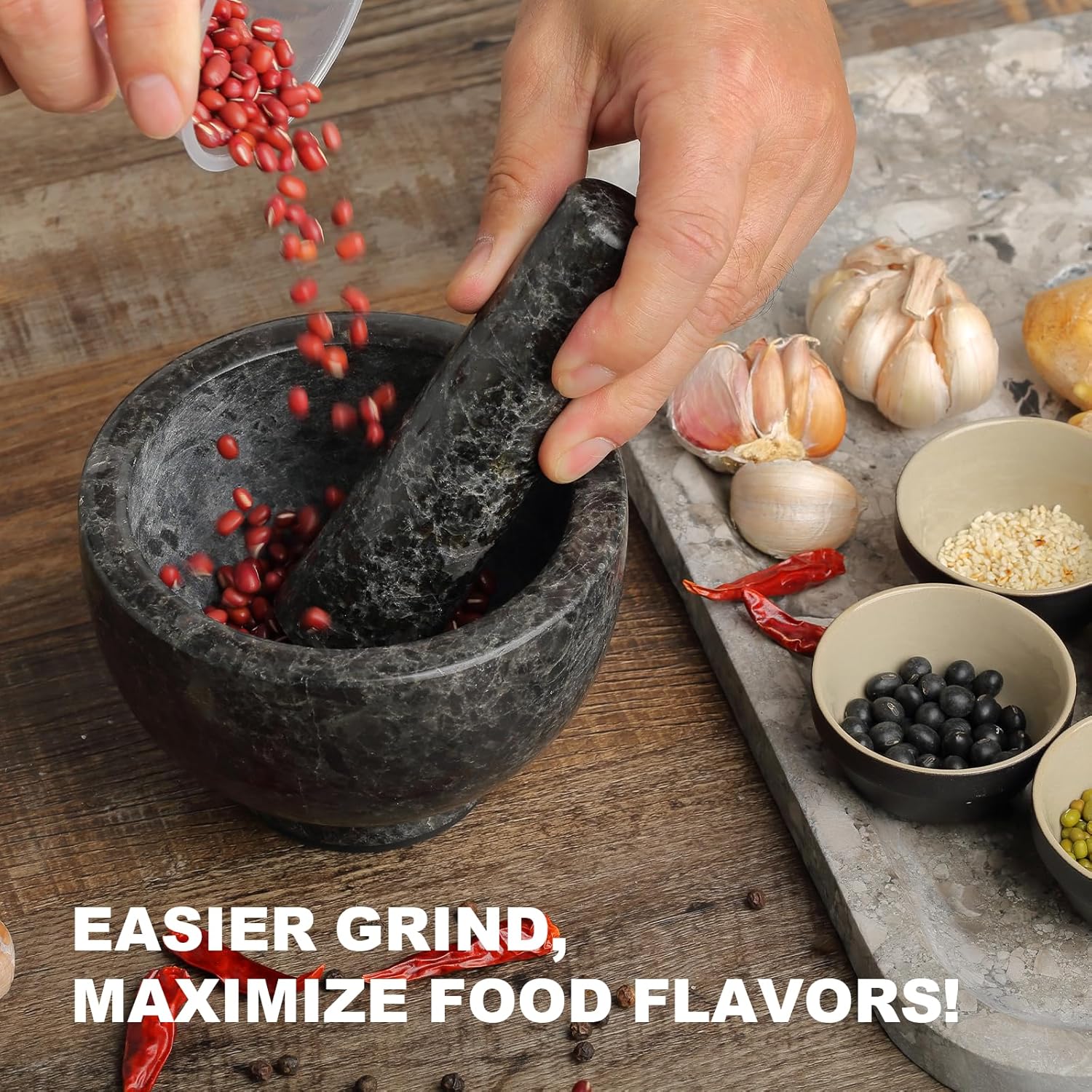- 【Widely Use】The Mortar and Pestle set can be used for grinding dry ingredients, spices... Also perfect for guacamole and a great option for grinding sauces, fruit salad, pills, nuts etc. Meeting all your grinding needs.