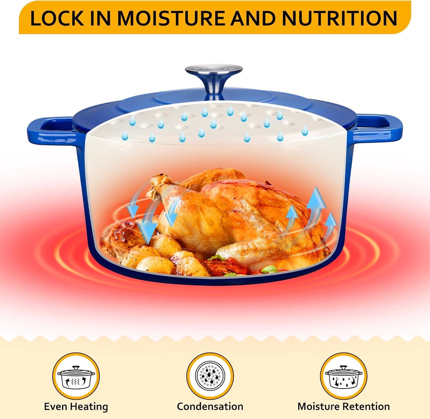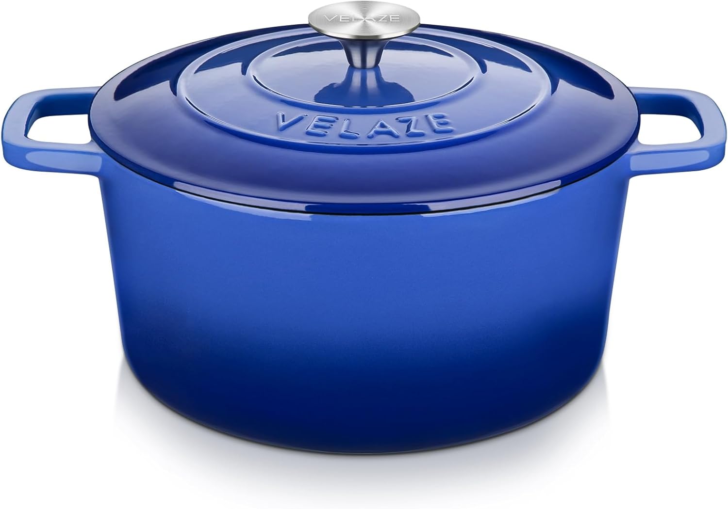 Velaze 6 QT Enameled Dutch Oven Pot with Lid, Cast Iron Dutch Oven with Dual Handles for Sourdough Bread Baking, Cooking, Non-stick Enamel Coated Cookware (Blue)