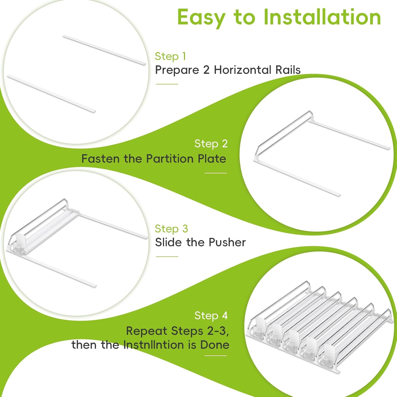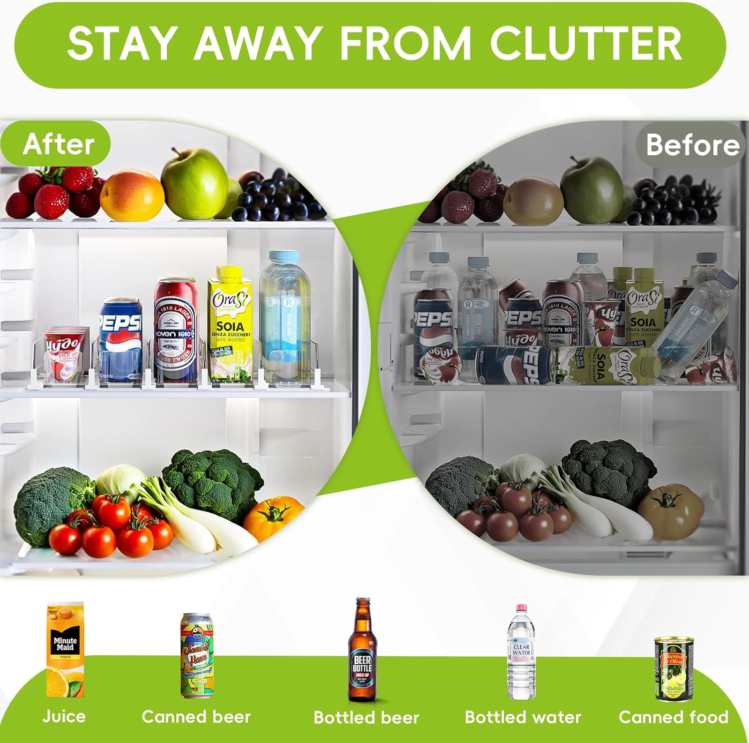 - 【Automatic Drink Propeller】The refrigerator drink organizer pusher can keep the beverage cans always in the front position, saves your space and ensures orderly storage and easy access to your drinks