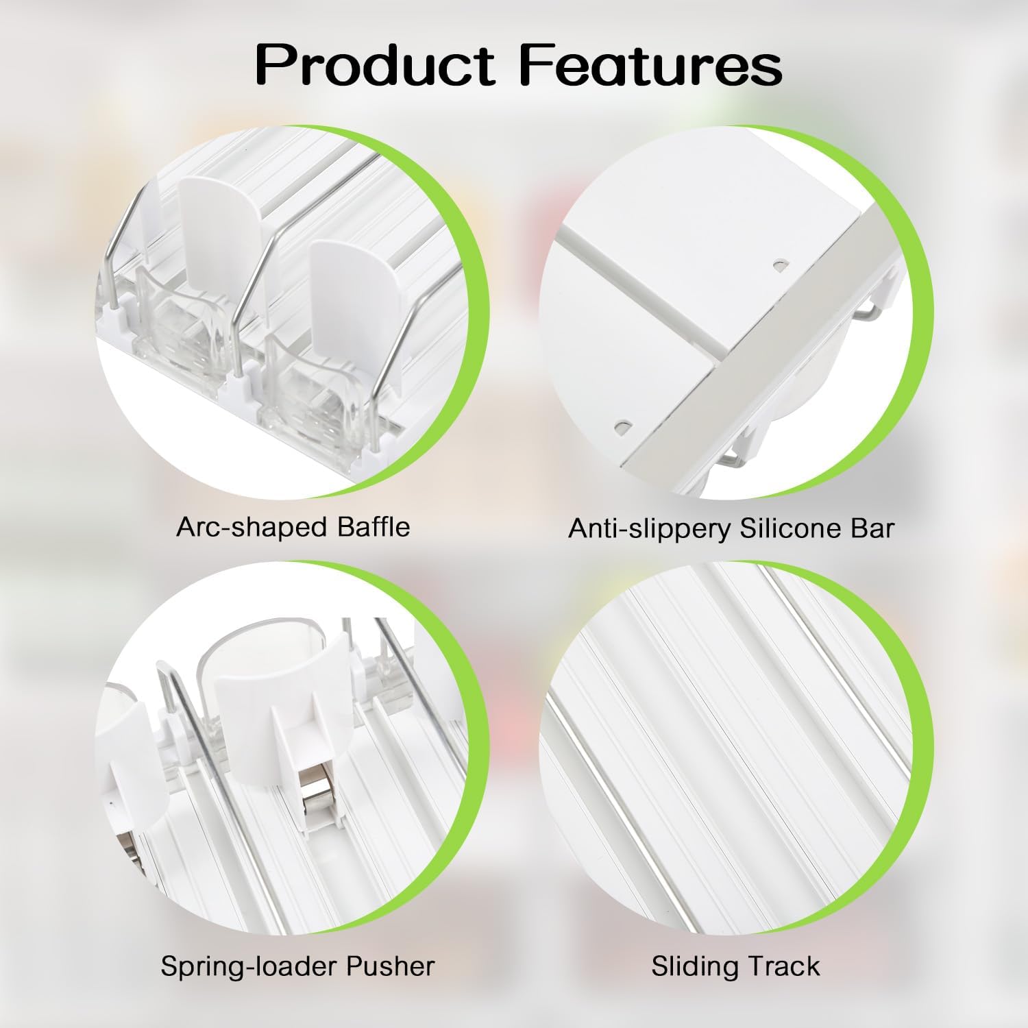 - 【Automatic Propulsion Design】 Spring-loaded drink organizer keeps your beverage cans always in the front position automatically, saves your space and ensures orderly storage and easy access to your drinks. This can storage rack can be widely used in refrigerators, garage coolers, commodity shelves, supermarkets or vending machines, etc.