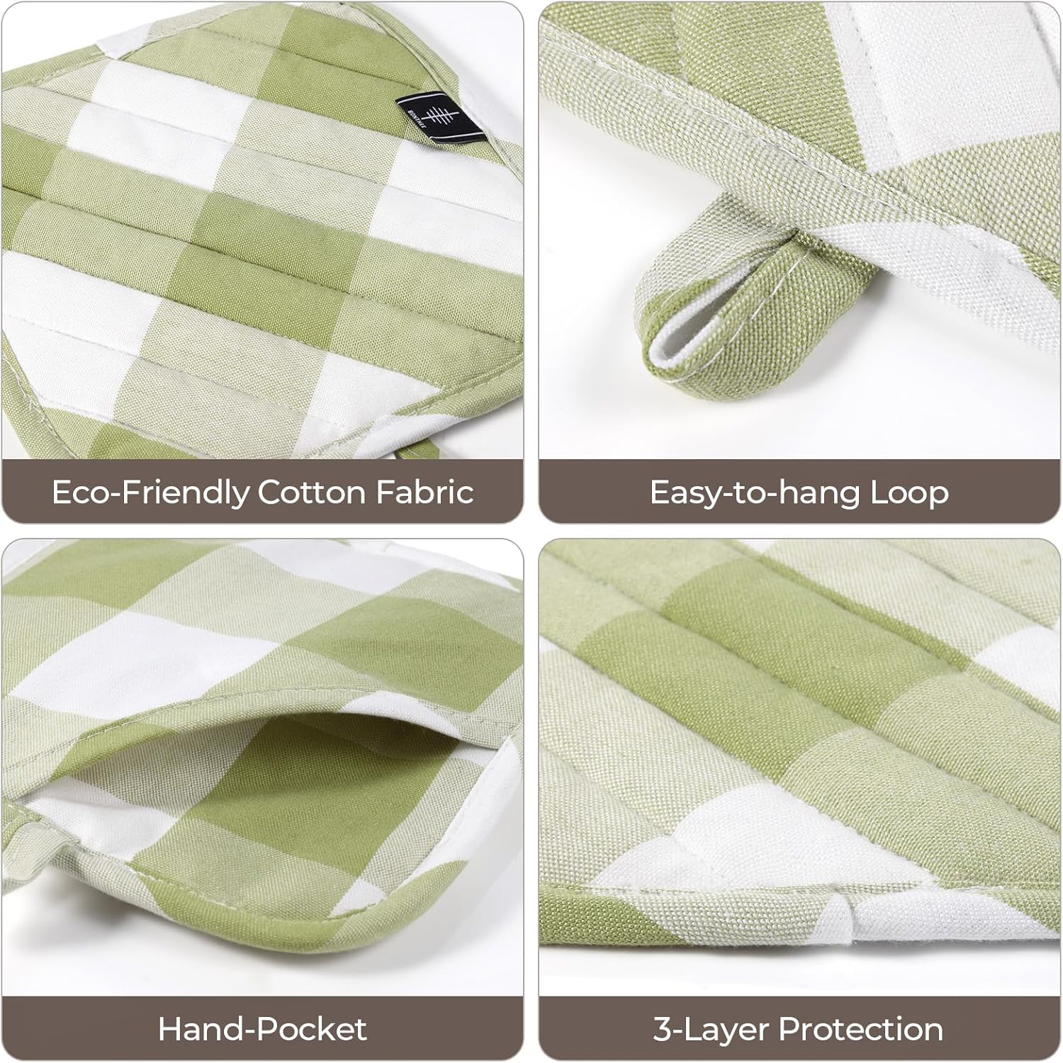 Cotton Pot Holders for Kitchen Heat Resistant Potholder Hot Pads Trivet Coaster Non-Slip Potholders Set for Cooking and Baking (2, Green Plaid, Square,8.27 in²)