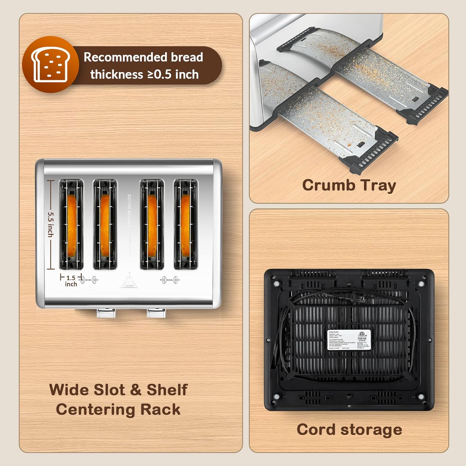- 【Easy to Clean and Maintain】: The non-stick, food-grade stainless steel slots and removable crumb tray make cleaning this toaster a breeze. Spend less time maintaining your appliance and more time enjoying your perfectly toasted bread.