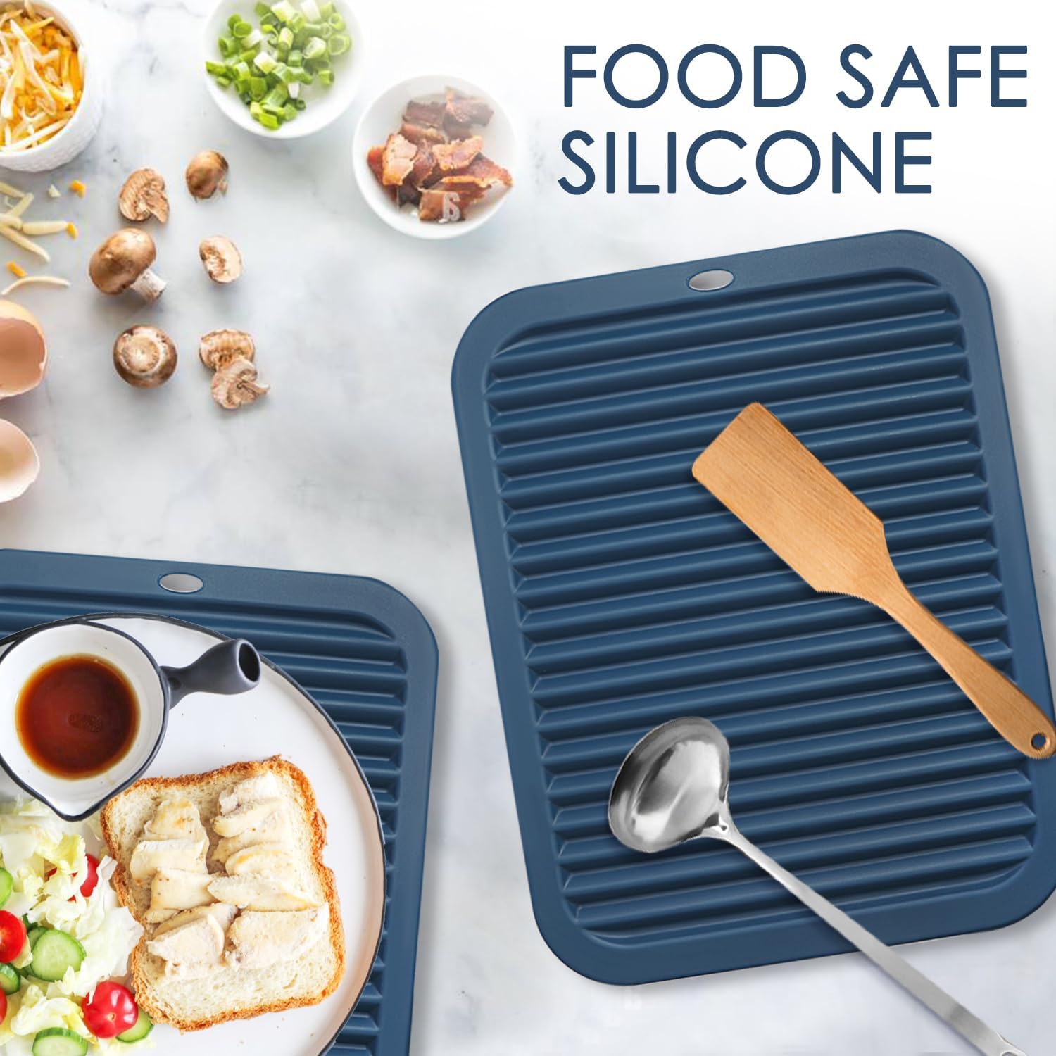 - LARGE SIZE OF RECTANGULAR TRIVETS: Our blue large silicone trivet with 9x11.6 Inches, leak-proof, nonstick, and lightweight, use the blue kitchen drying mat to replace old placemats, bulky oven mitts, or place pads under toasters or air fryers.