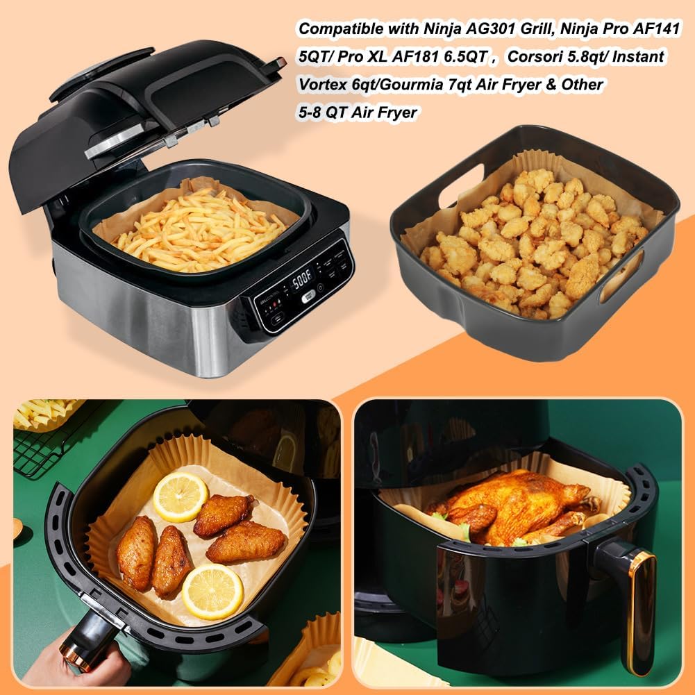 - PERFECT FOR NINJA AG301/ AF141& 5-8 QT AIR FRYER: With a 7.9-inch inner diameter and 9-inch outer diameter, and a height of 1.8 inches, these air fryer parchment paper liners are compatible with Ninja AG301 grill, Ninja AF141 5 QT Pro 4-in-1 Air Fryer, Corsori 5.8qt, Instant Vortex 6qt, Gourmia 7qt air fryers, and other 5-8 quart air fryers