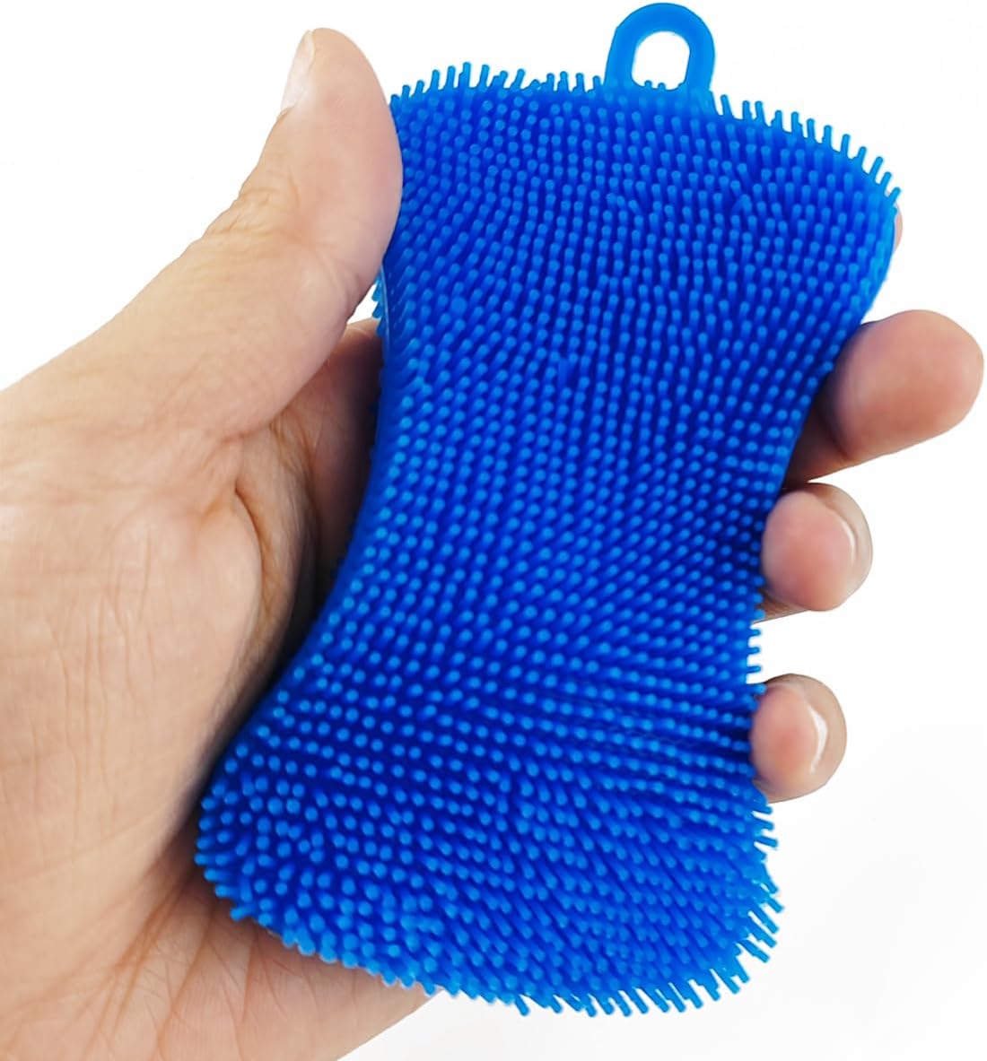 - Size: 4.92β x 2.76β. All silicone dish sponges from the set have a small hook on one side, you can hang it in a visible place when not in use, their bright colors will pop up in your eyes, so you donβt have to worry about finding them; They are also easy to store and dry fast without taking up too much space.