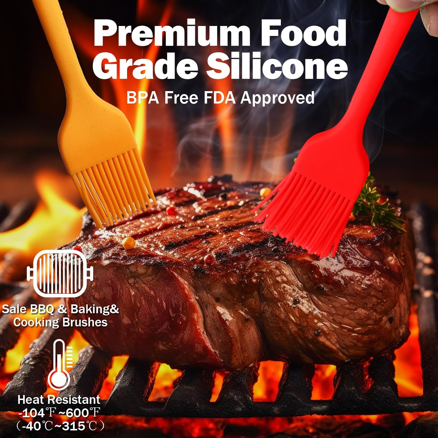 - 【Premium Quality】The basting brush is made of top food grade compliant silicone. The cooking brush resists temperatures up to 446℉/230℃. It will not melt, warp, discolor, or shrink, BPA free. They are essential camping, picnic and kitchen accessories.