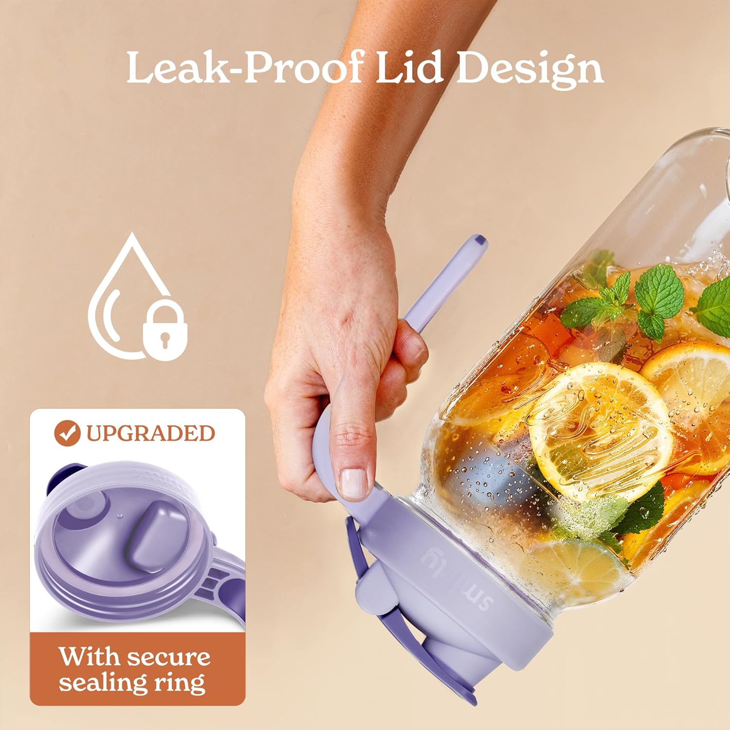 - Functional design: The non-slip handle on this 2 quart pitcher with lid ensures steady pouring.Hanging ring on this large mason jars adds convenience for easy carrying and storage