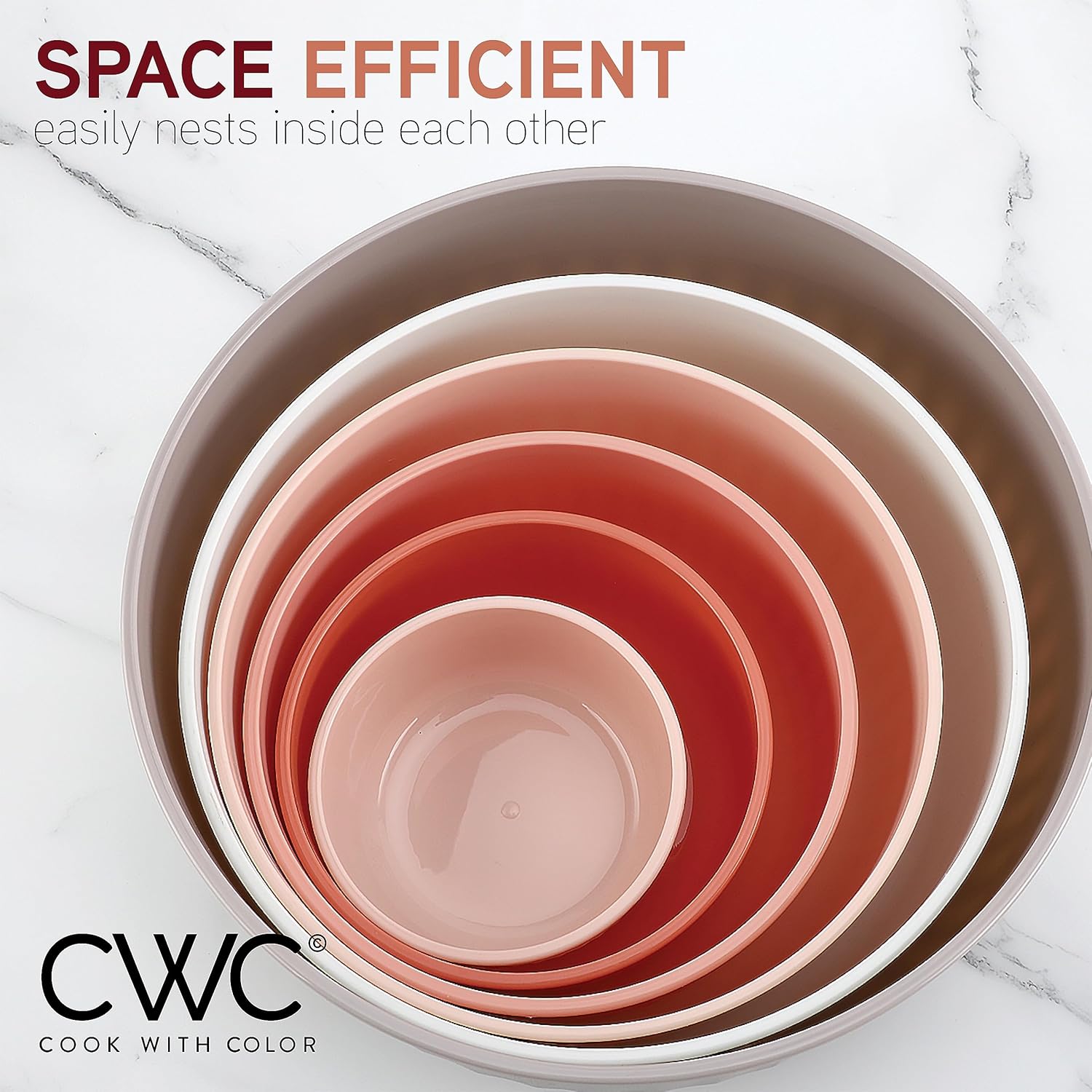 - Cook with Color 12 piece plastic mixing bowl set - non slip bowls with lids; easy to clean, sturdy mixing bowls.