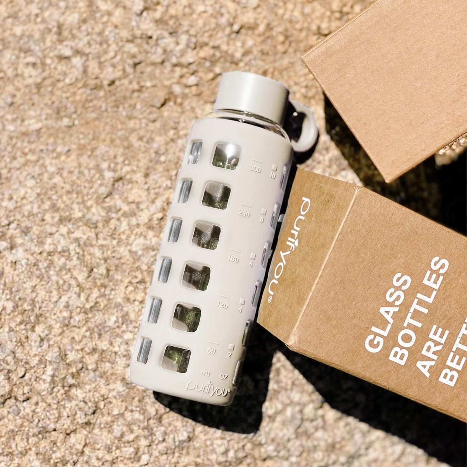 - Track & Improve Daily Hydration: Stay on top of your water goals with purifyou glass water bottles featuring clear, easy-to-read time and volume markings; ideal for workouts, travel, the office, or relaxing at home