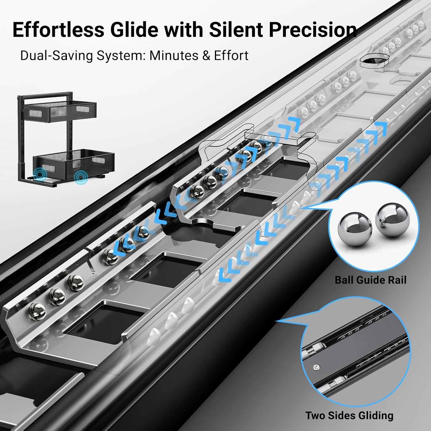 - Sliding Storage Drawer: With a double-rail ball-bearing design that slides without friction, it easily slides out of the drawer and lasts for more than 10,000 uses at a load of 50 KG - 70% smoother than standard slides. Allowing you to easily access the items stored at the bottom.