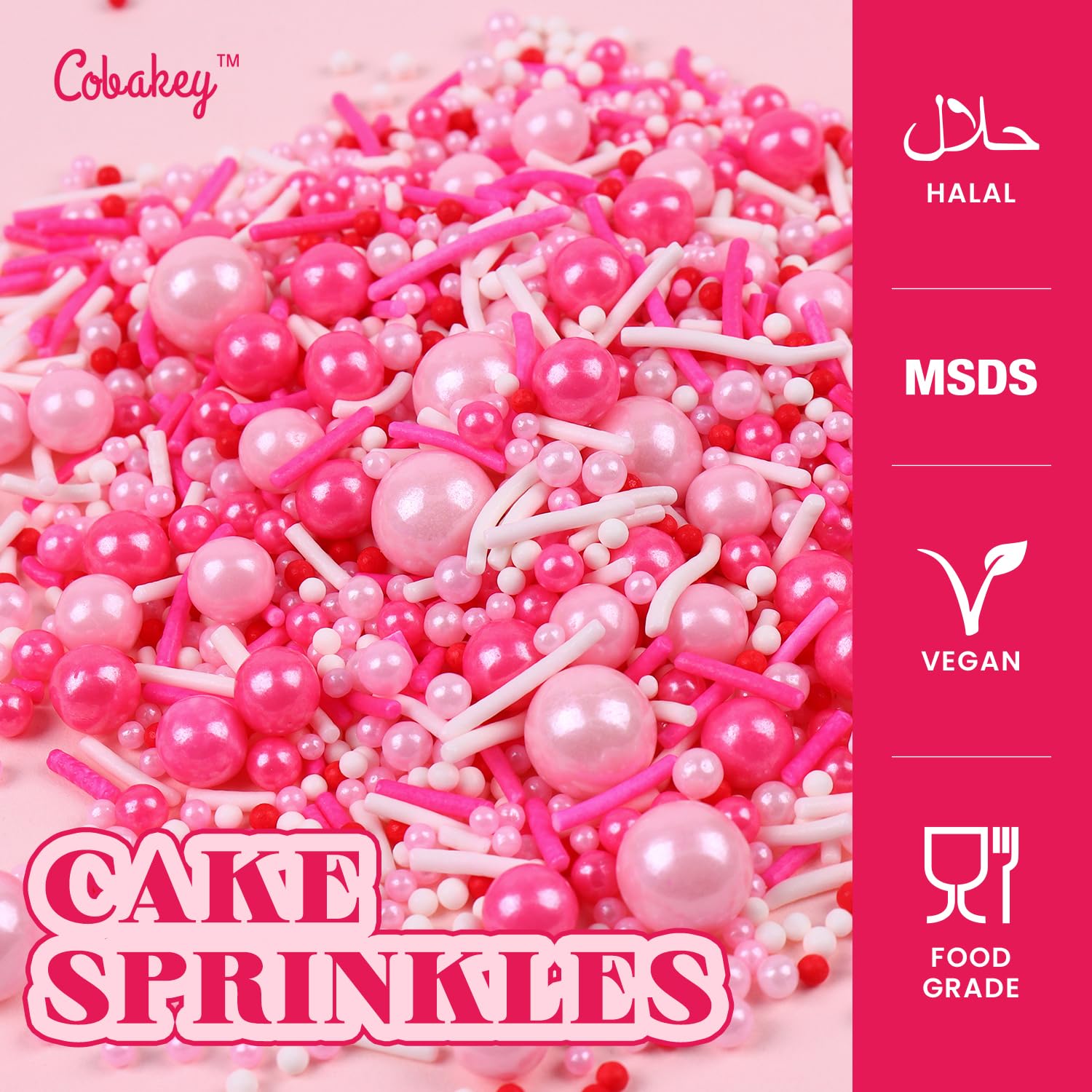 - Customer Service: Cobakey Store has been committed to creating a distinctive cake decorating style, we hope our sprinkles can bring sweetness to your life. ATTENTION: The Bigger The Sugar, The Harder It is. It is Recommended to Eat Small Sugar, Or Melt It in Your Mouth Rather Than Bite It.