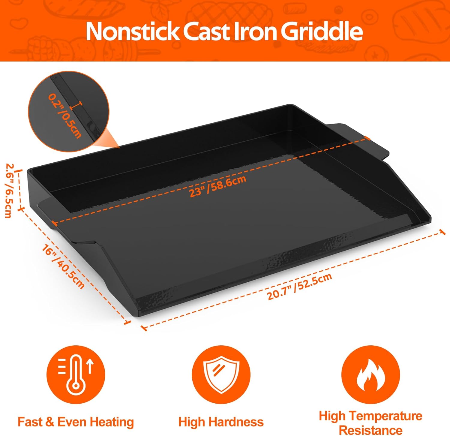 Onlyfire Universal Enamelled Cast Iron Cooking Griddle, Nonstick Coating Griddle Flat Top Grill Plate with extra high sidewalls for All Gas Grills and 4 Burner Range Oven, 23" x 16"
