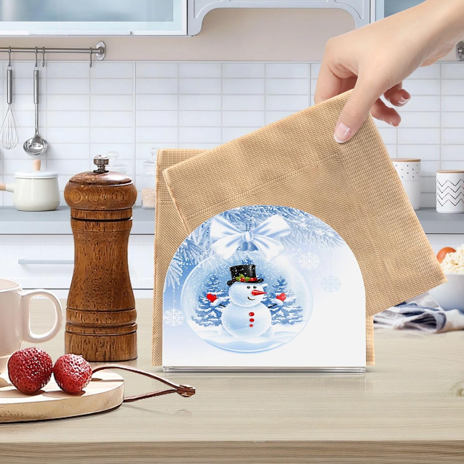 Snowman Winter Snowflake Christmas Napkin Holder for Table Paper Napkins Holder Acrylic Tissue Dispenser Kitchen Dining Room Bathroom Party Car Decor