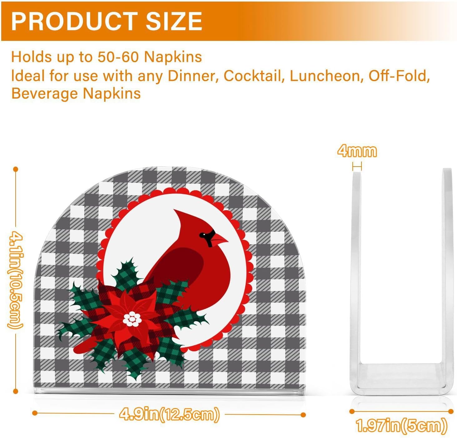 Cardinal Bird Christmas Checkered Plaid Napkin Holder for Table Paper Napkins Holder Acrylic Tissue Dispenser Kitchen Dining Room Bathroom Party Car Decor