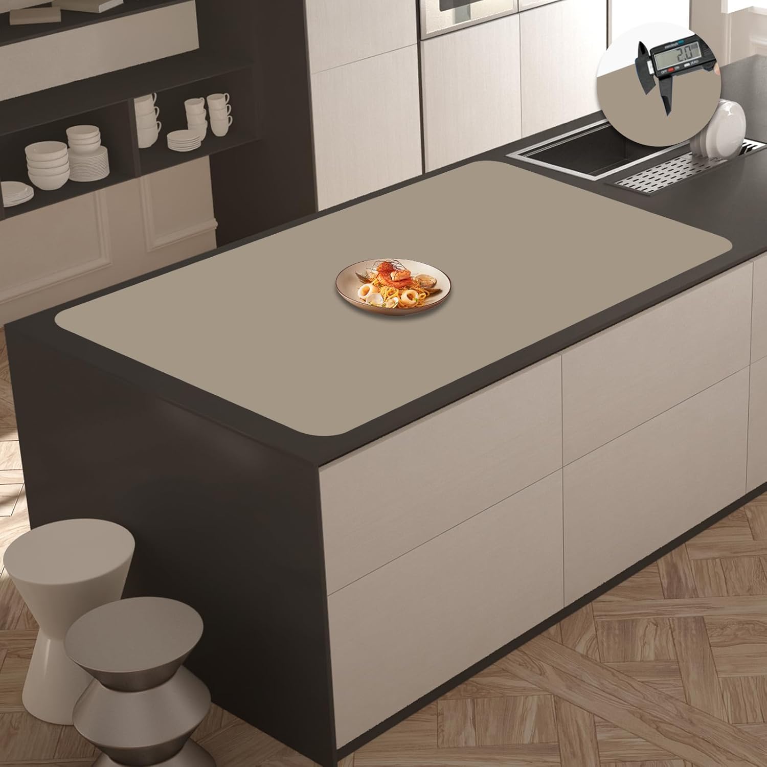 2MM Extra Thick Silicone Mats for Kitchen Counter, 35.4"x23.6" Kitchen Island Largest Heat-Resistant Baking Mat, Thicker Non-Slip Desk Protect Mat, Multipurpose Countertop Protector (Brown)
