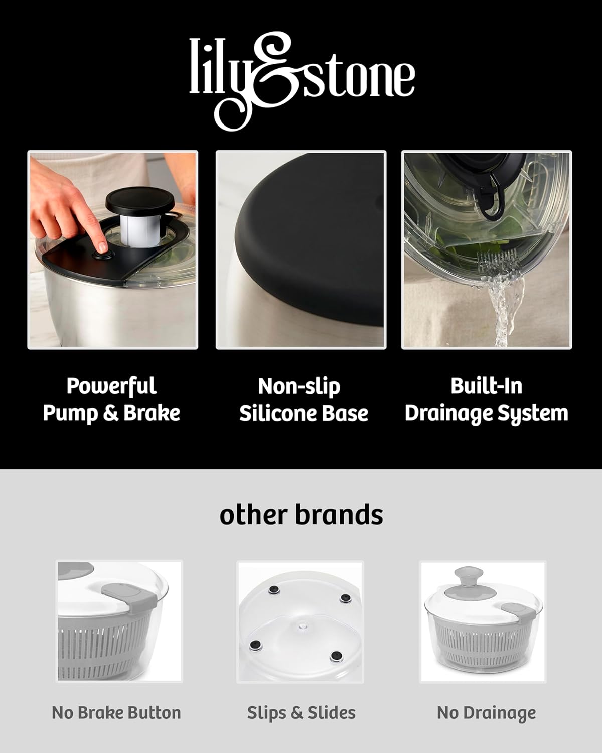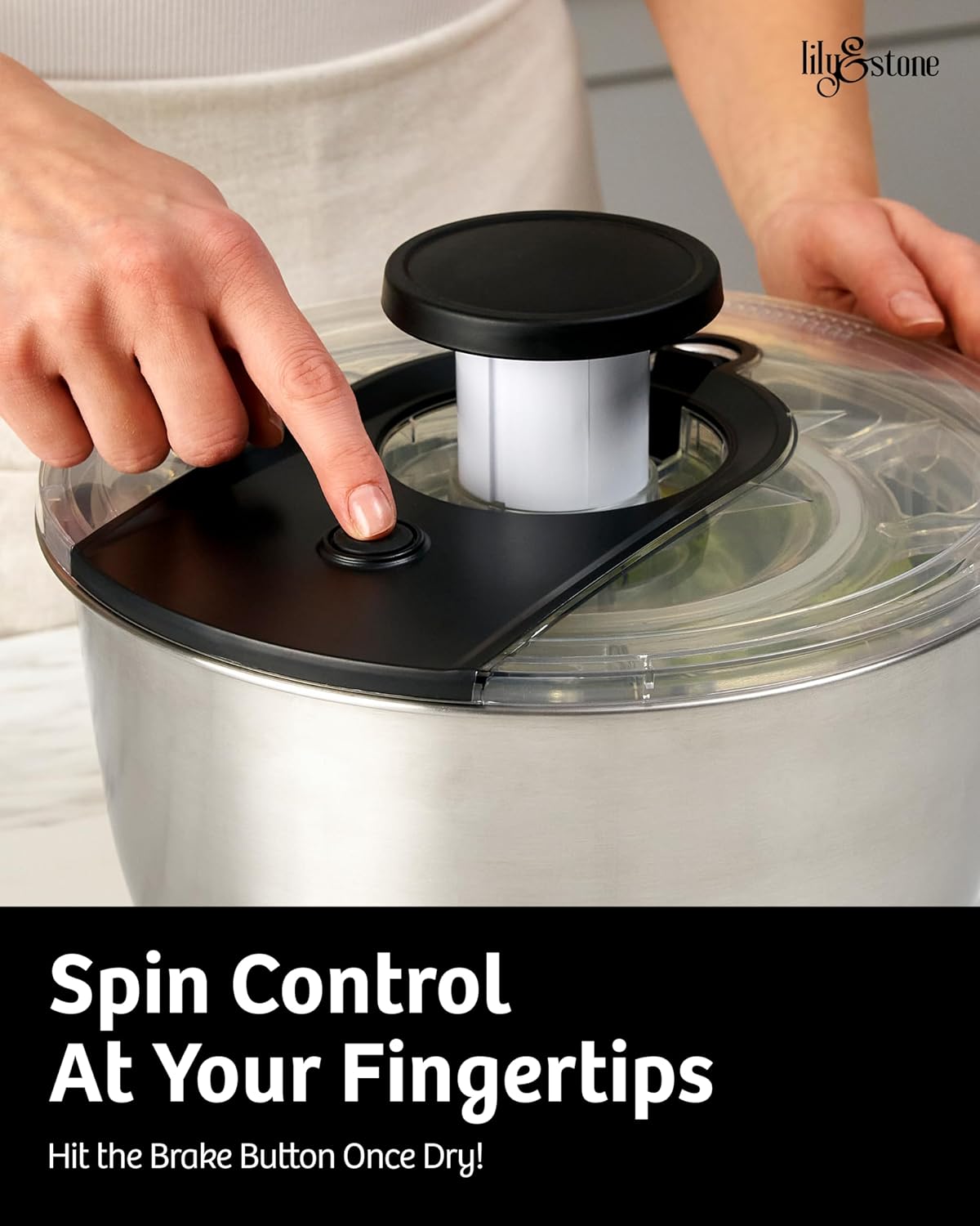 - Turn Chore into Pleasure - Say goodbye to hand-washing lettuce, drying chopped salad with paper towels, creating a watery mess, and settling for bland salads; Our stainless steel salad spinner pump effortlessly spins quick, mess-free, and gourmet food