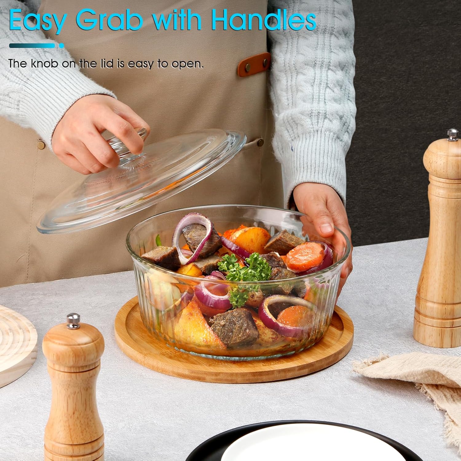 - 【Microwave, Oven, Freezer, Dishwasher Safe】Round Glass Casserole Dish is not only oven-safe, but also microwave and freezer safe. This means you can easily reheat leftovers or store leftovers for later use.NOTE: No direct fire or induction cooker.
