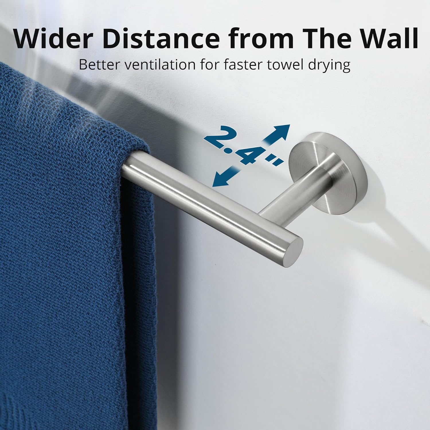 - MODERN DESIGN - The bath towel rack adopts exquisite craftsmanship, invisible screw design, seamlessly connected between the columns, for a high-end style. Only one single towel rod can make your bathroom and kitchen look more elegant and tidy.