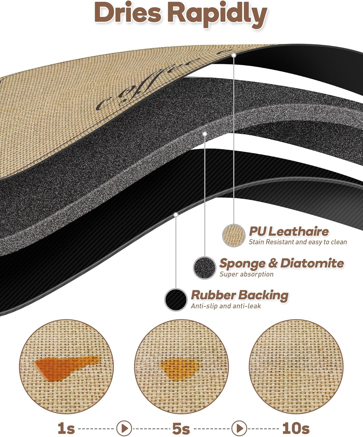 SUEH DESIGN Coffee Mat, Absorbent Dish Drying Mat 23.6 x 15.7 in Quick Dry Coffee Mat Large Drying Mats for Kitchen Counter Coffee Bar, Coffee Bar