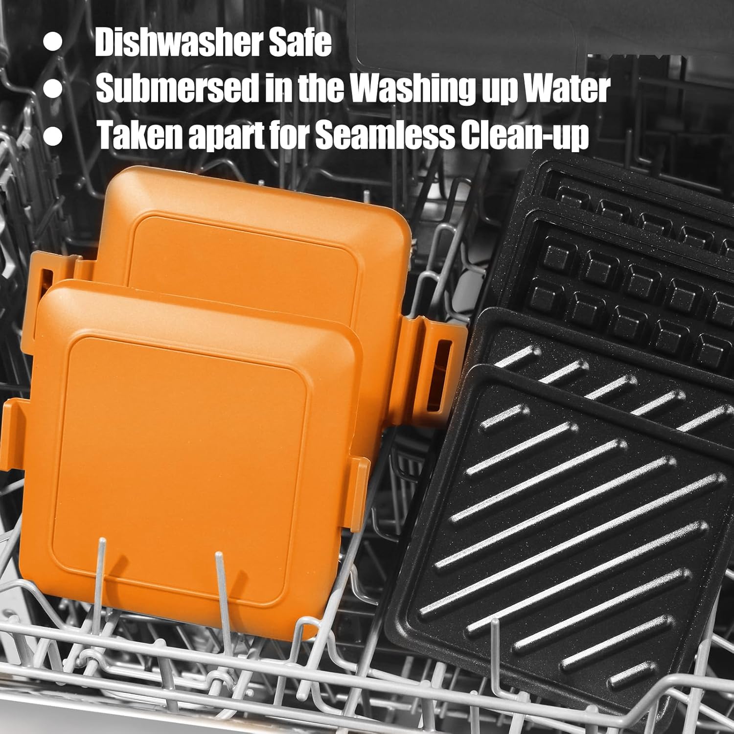 - 3.Dishwasher Safe and No Electric Unplugged microwave sandwich toaster use a safe non-stick coating that does not stick to the surface of the food, toastie maker can be washed in the dishwasher or soaked in washing water with a soft cloth. Do not scrub with sharp objects
